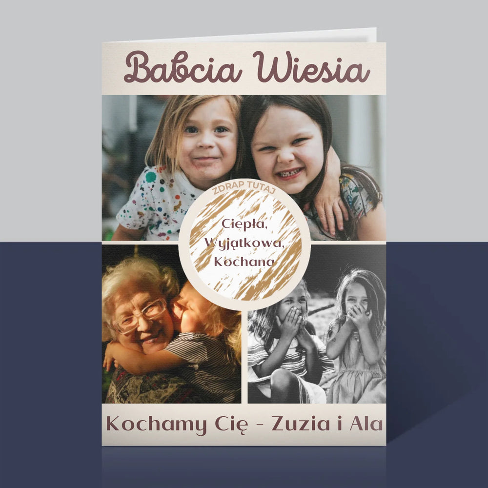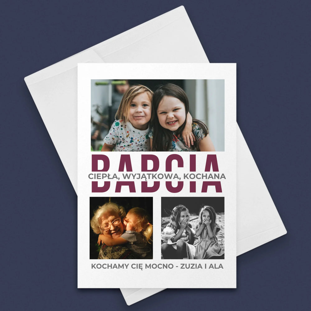 Personalizowana kartka z życzeniami na specjalną okazję. Wybierz własne zdjęcia i stwórz unikalny upominek!