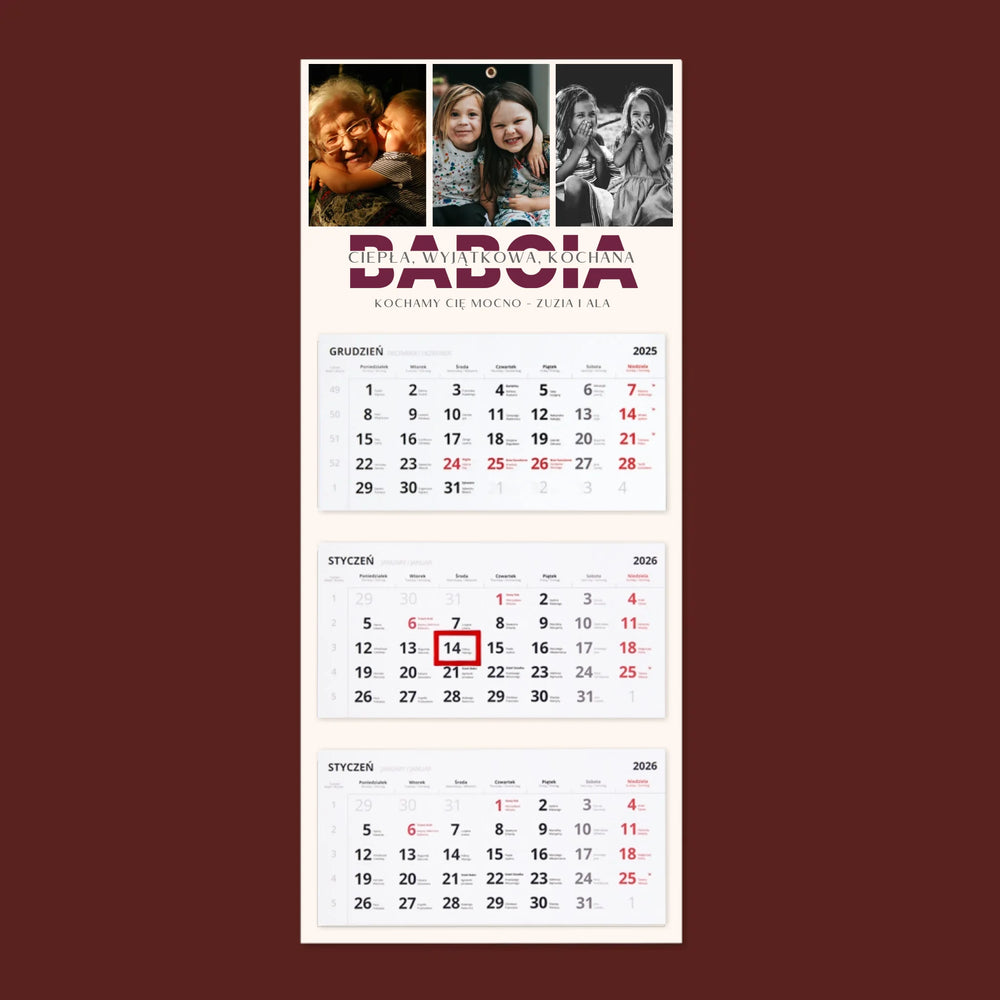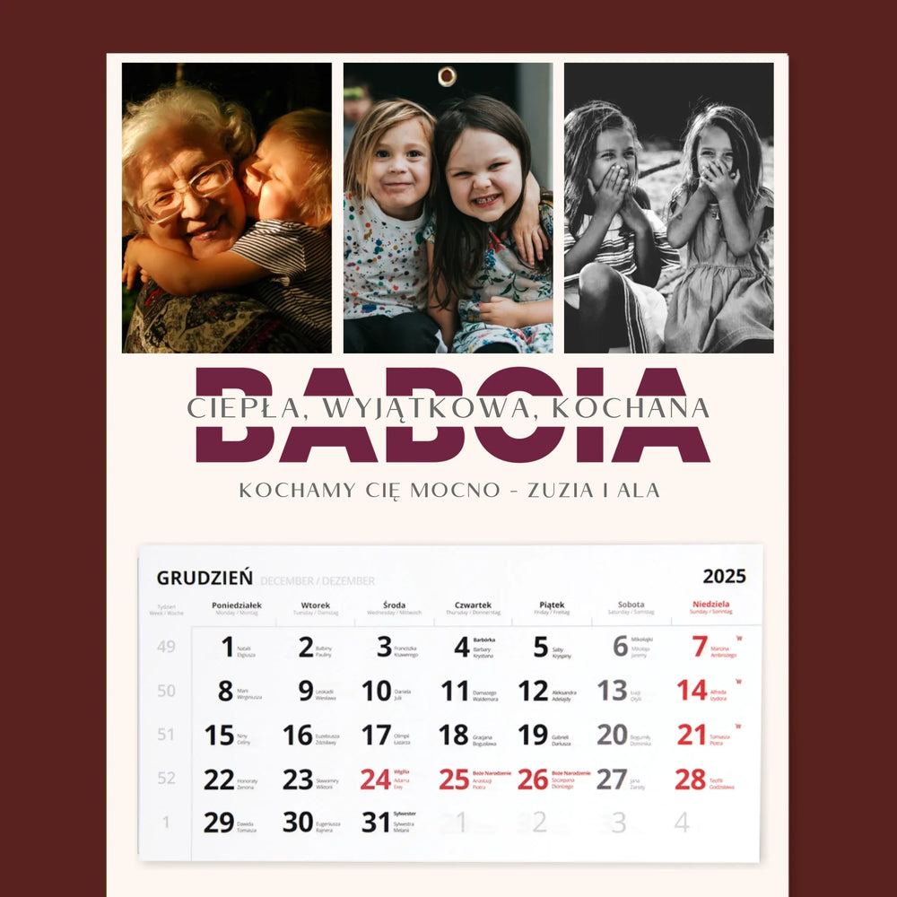 Fotokolaż: Babcia Cechy Charakteru - Kalendarz trójdzielny