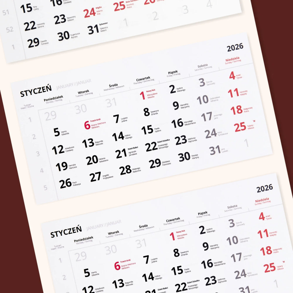 Kalendarz trójdzielny z wybranym przez Ciebie personalizowanym wzorem.