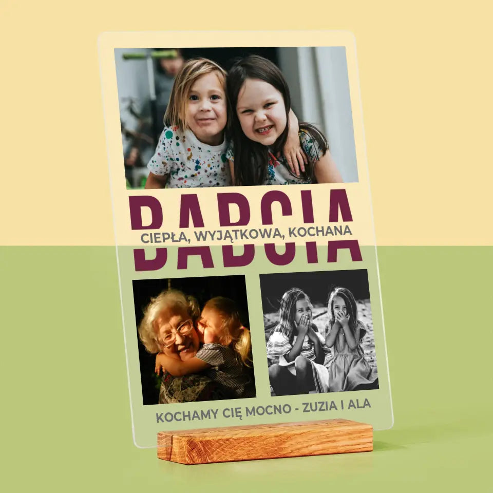 Fotokolaż: Babcia Cechy Charakteru - Wydruk na szkle akrylowym LED