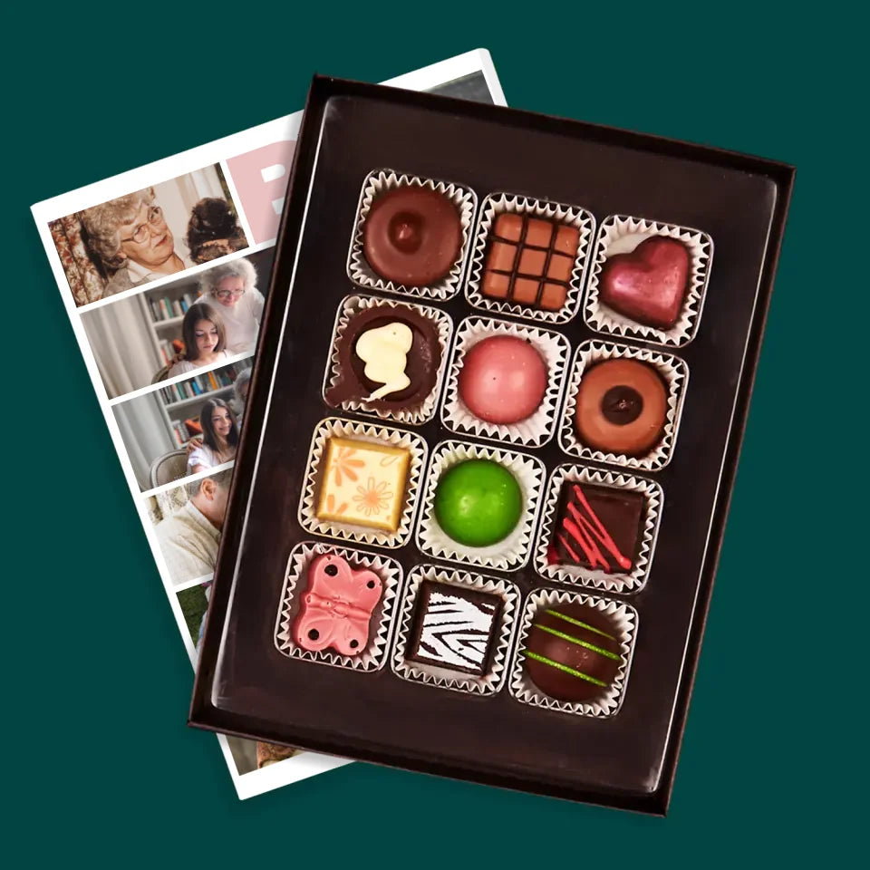 Pyszne praliny z belgijskiej czekolady w eleganckim pudełku z wybraną przez Ciebie personalizacją.