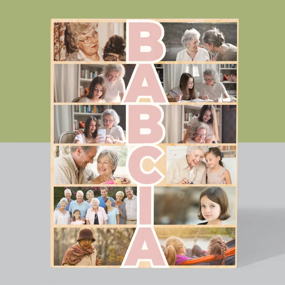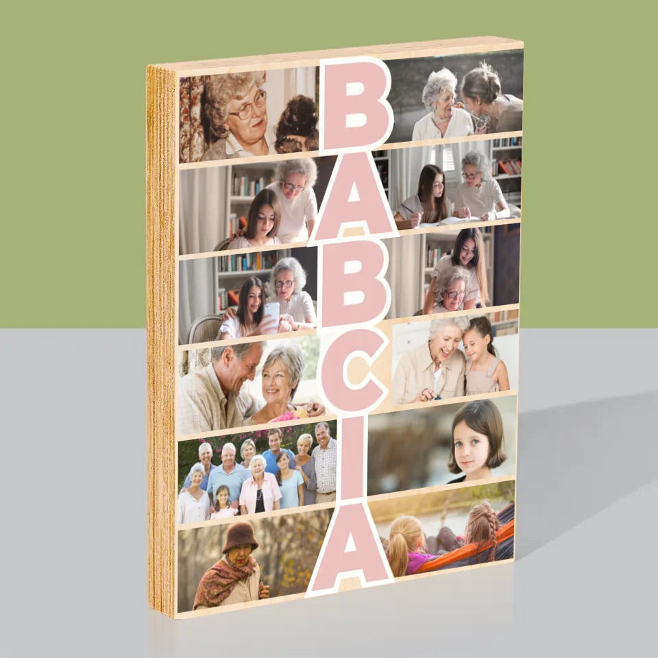 Fotokolaż: Babcia - Wydruk na drewnie - Pion