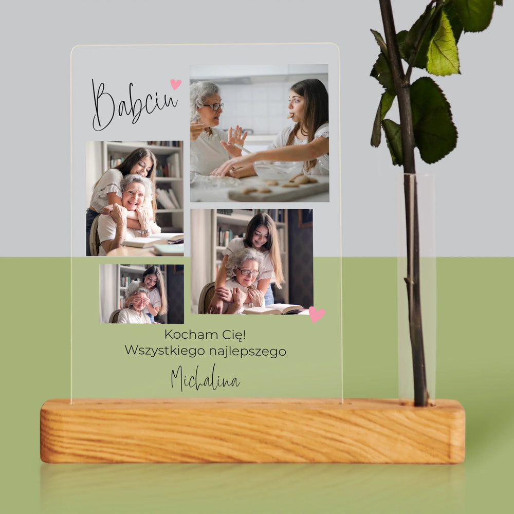 Fotokolaż: Babciu Kocham Cię - Wydruk na szkle akrylowym z różą