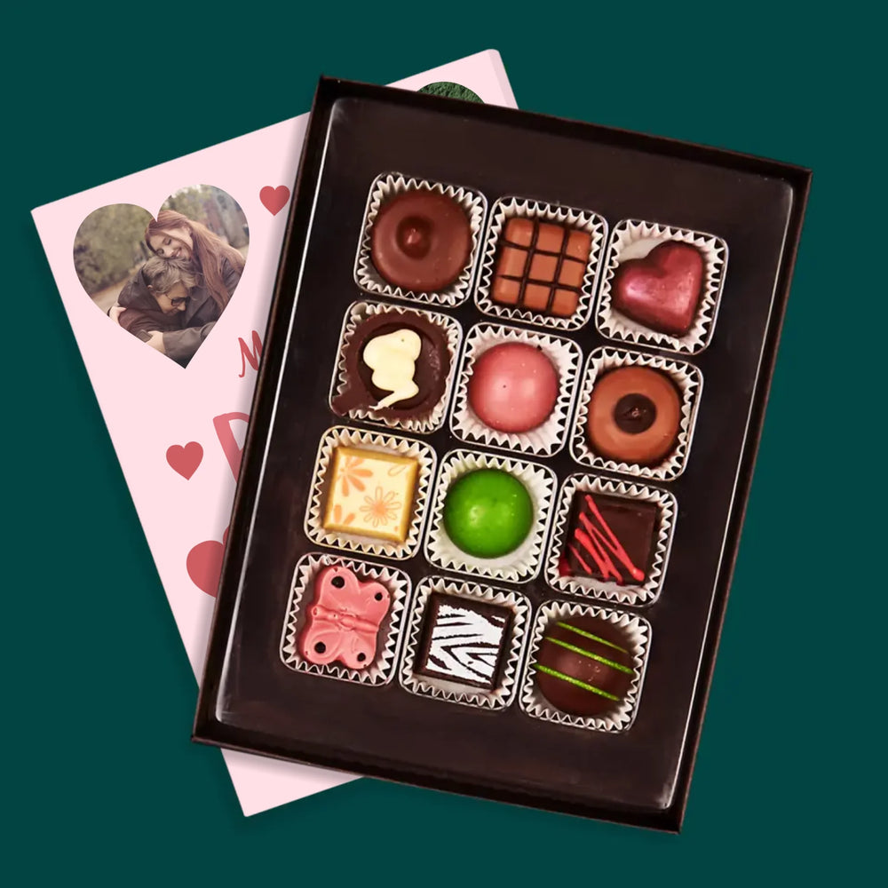 Pyszne praliny z belgijskiej czekolady w eleganckim pudełku z wybraną przez Ciebie personalizacją.
