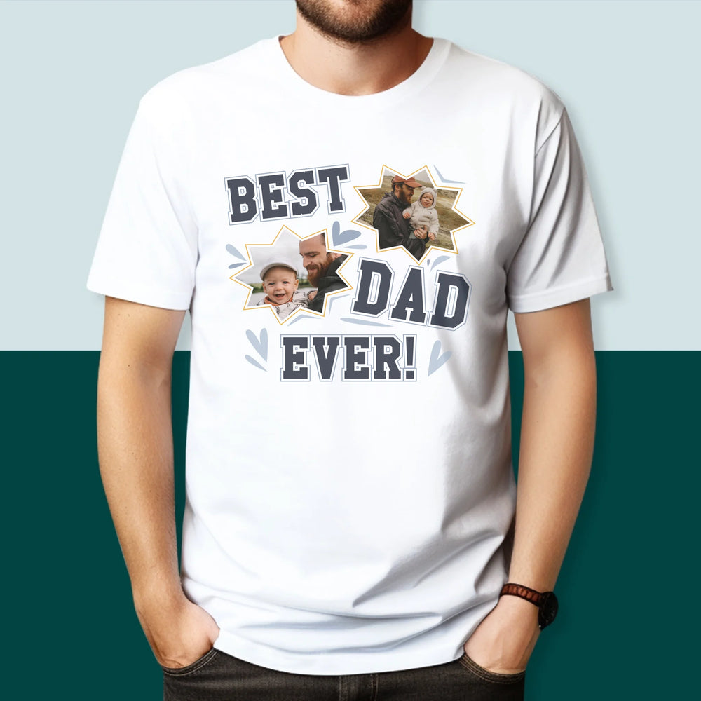 Fotokolaż: Best Dad Ever Gwiazdy - Personalizowana Koszulka Męska