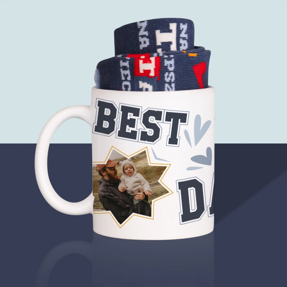 Fotokolaż: Best dad ever gwiazdy - Skarpetki w kubku dla taty