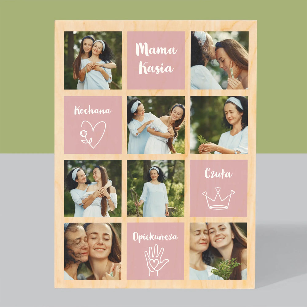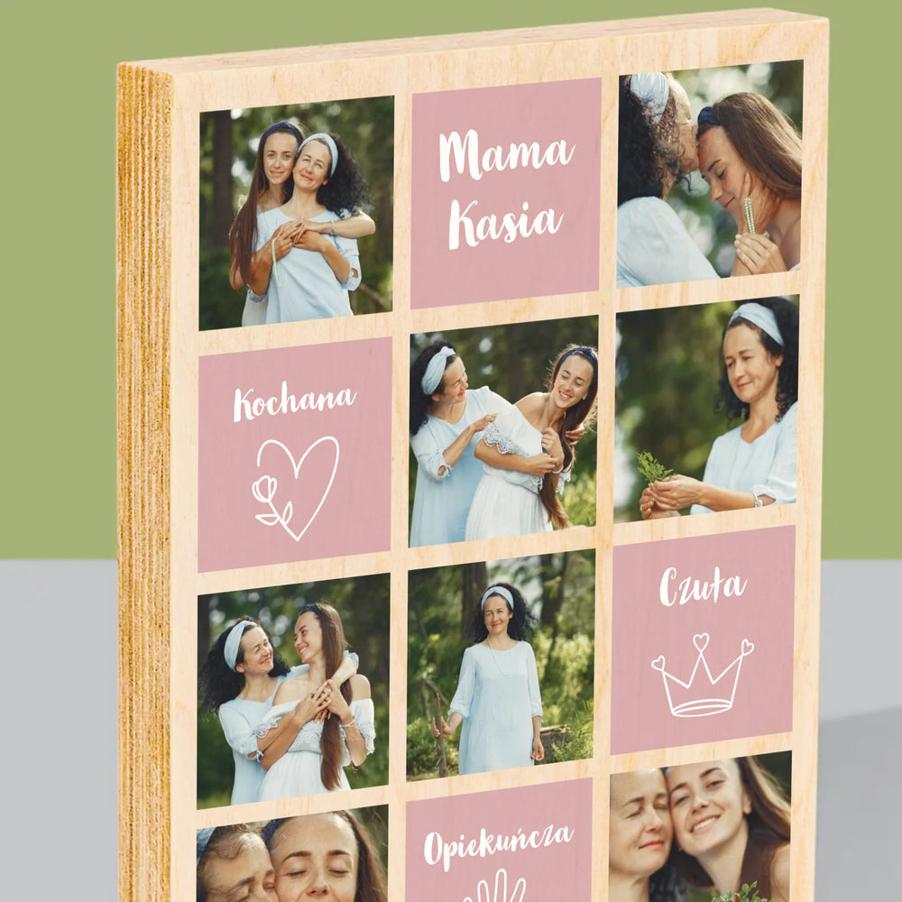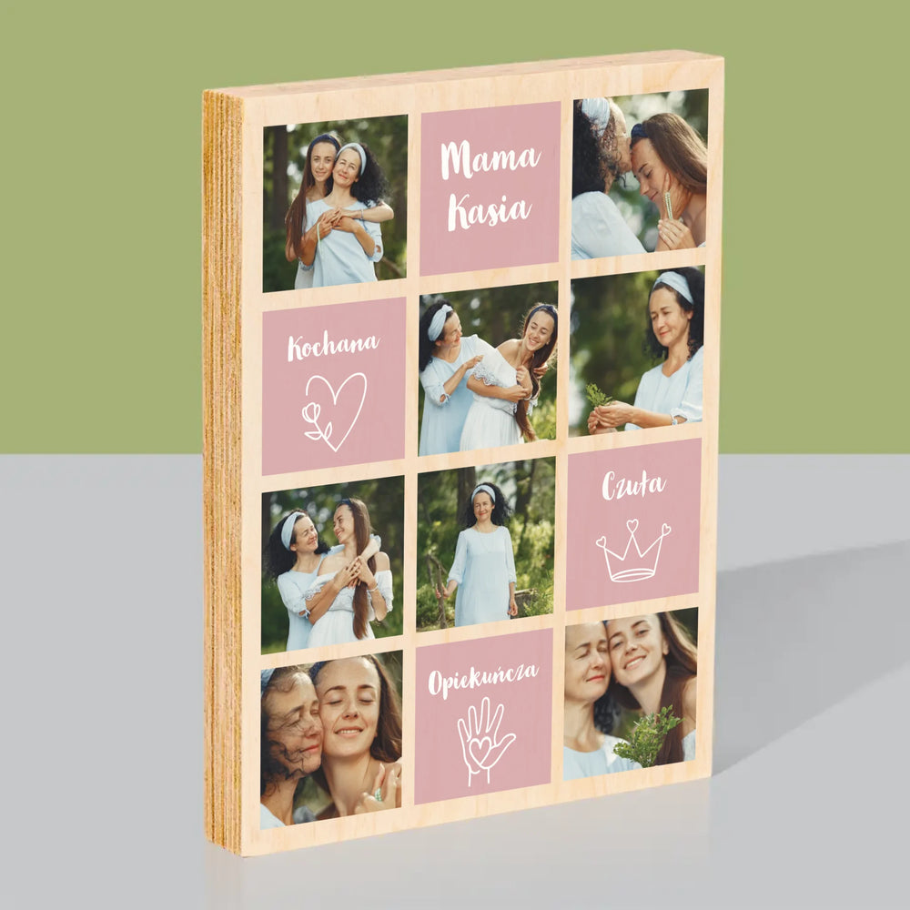 Fotokolaż: Cechy Mamy - Wydruk na drewnie - Pion
