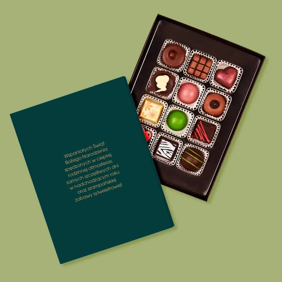 Pyszne praliny z belgijskiej czekolady w eleganckim pudełku z wybraną przez Ciebie personalizacją.