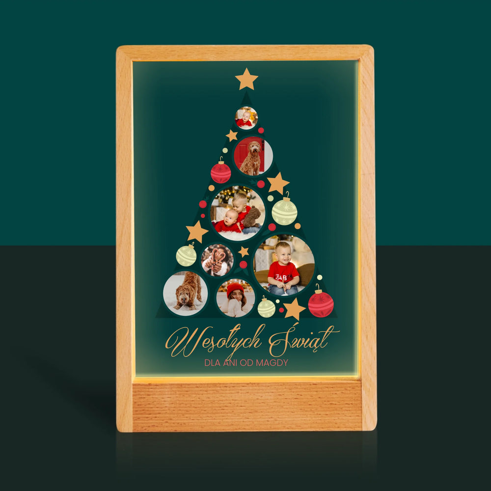 Fotokolaż: Choinka Bombki - Wydruk na szkle akrylowym LED