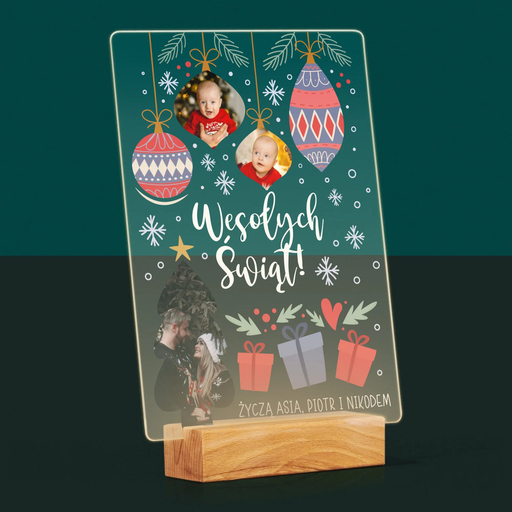 Fotokolaż: Choinka I Bombki - Wydruk na szkle akrylowym w ramce LED