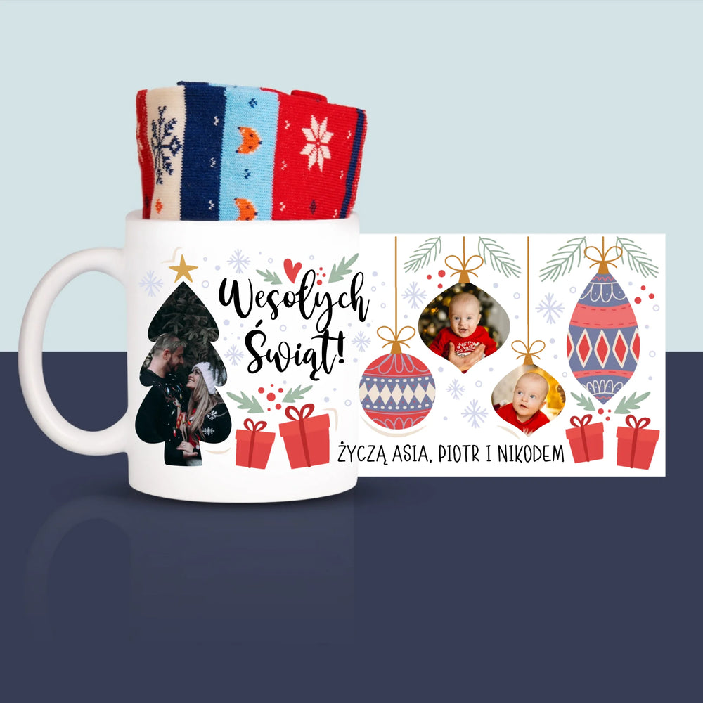 Fotokolaż: Choinka i Bombki - Zimowe skarpetki w kubku
