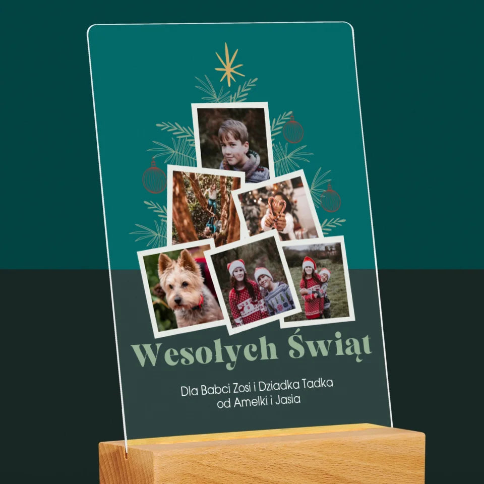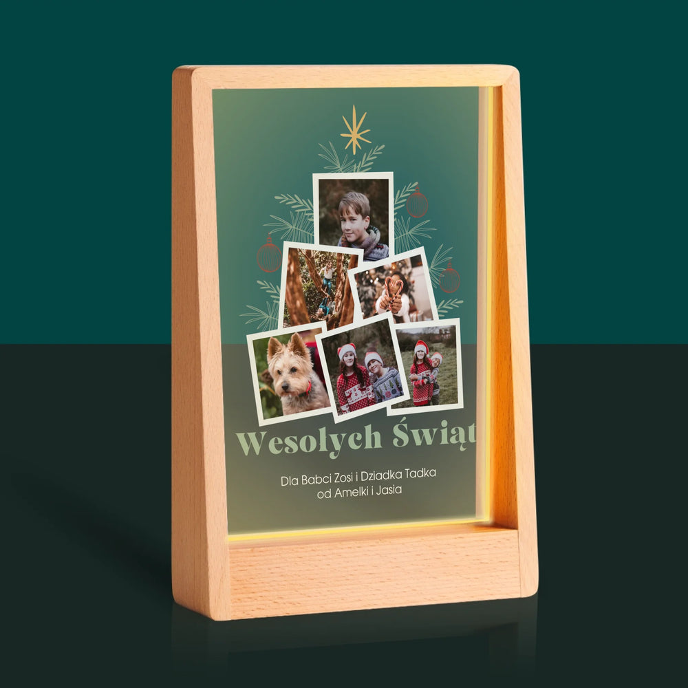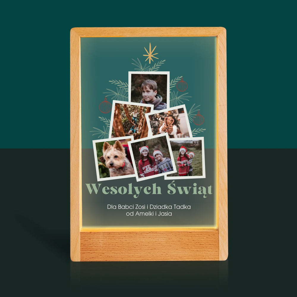 Fotokolaż: Choinka - Wydruk na szkle akrylowym w ramce LED
