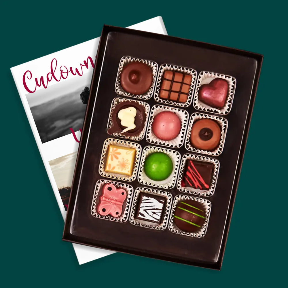 Pyszne praliny z belgijskiej czekolady w eleganckim pudełku z wybraną przez Ciebie personalizacją.