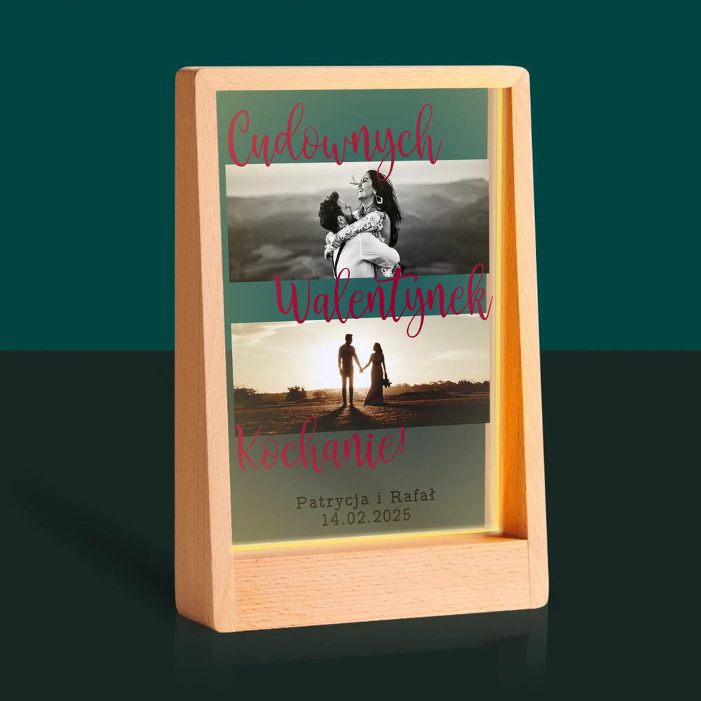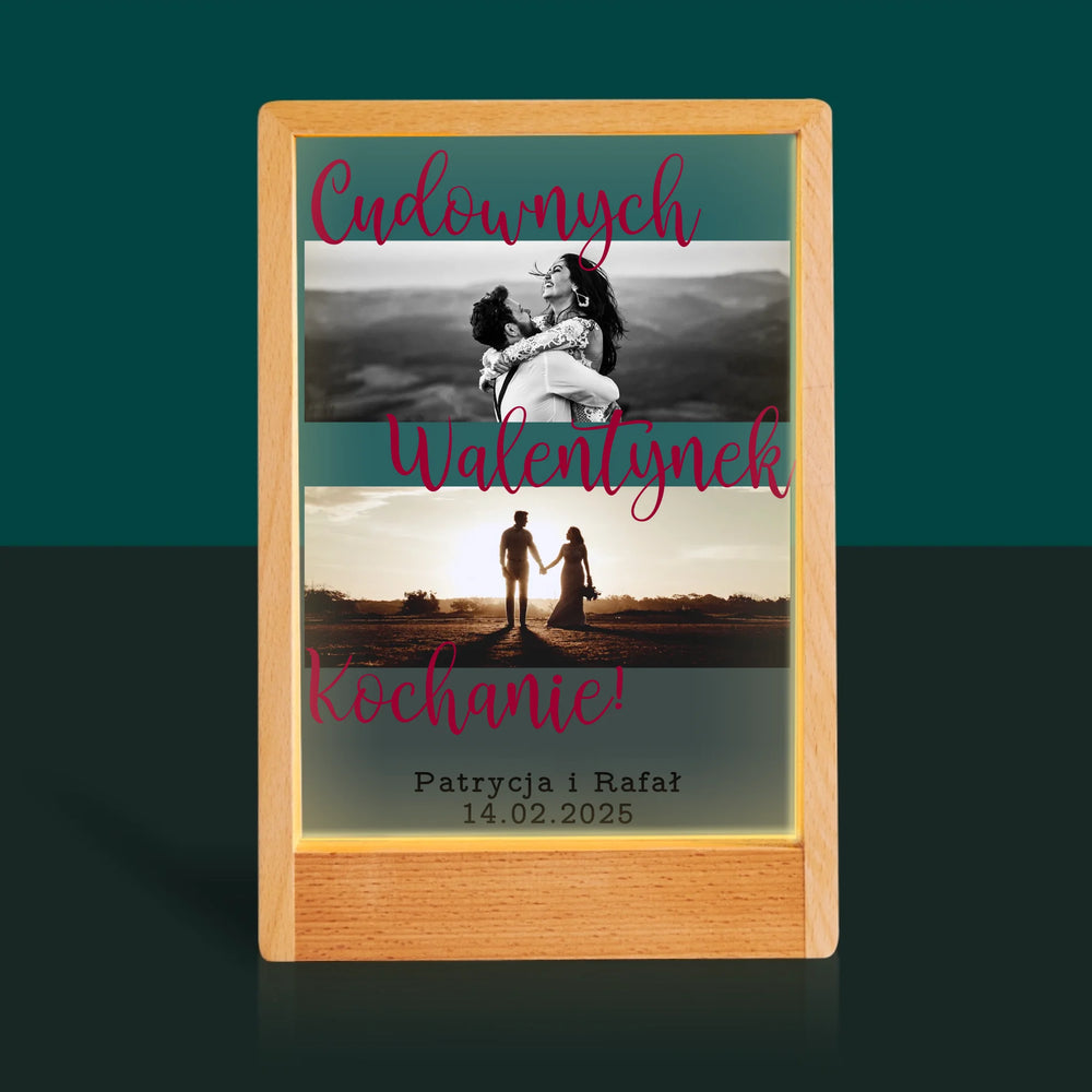 Fotokolaż: Cudownych Walentynek - Wydruk na szkle akrylowym w ramce LED