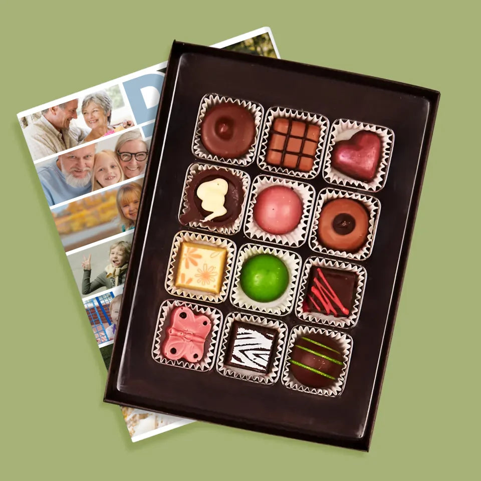 Pyszne praliny z belgijskiej czekolady w eleganckim pudełku z wybraną przez Ciebie personalizacją.