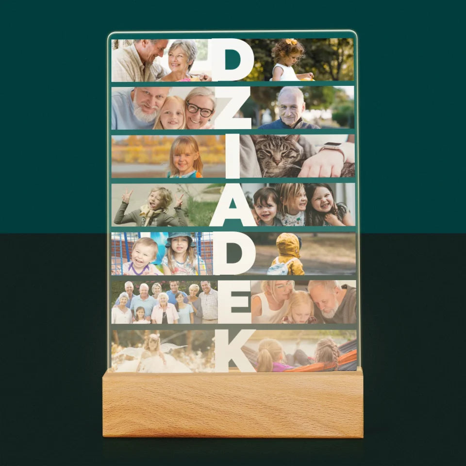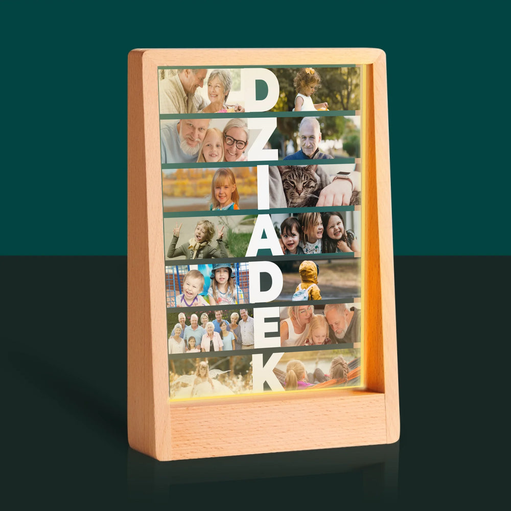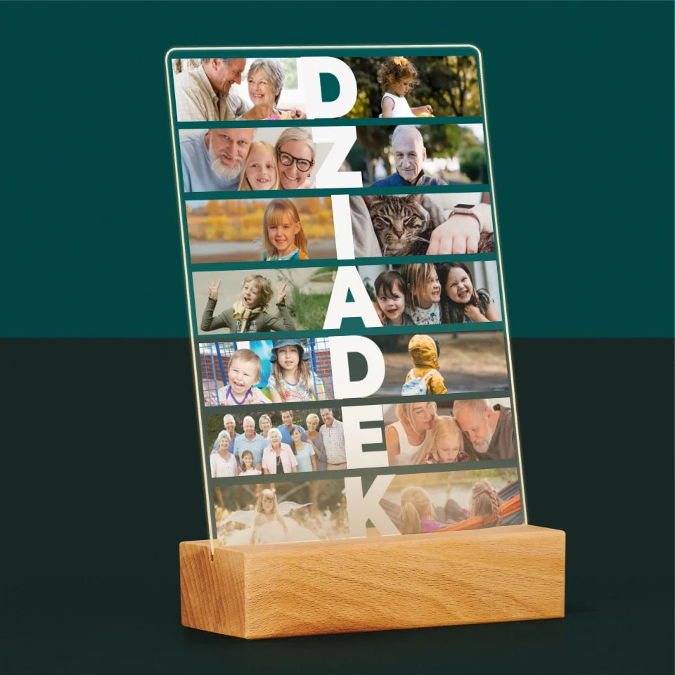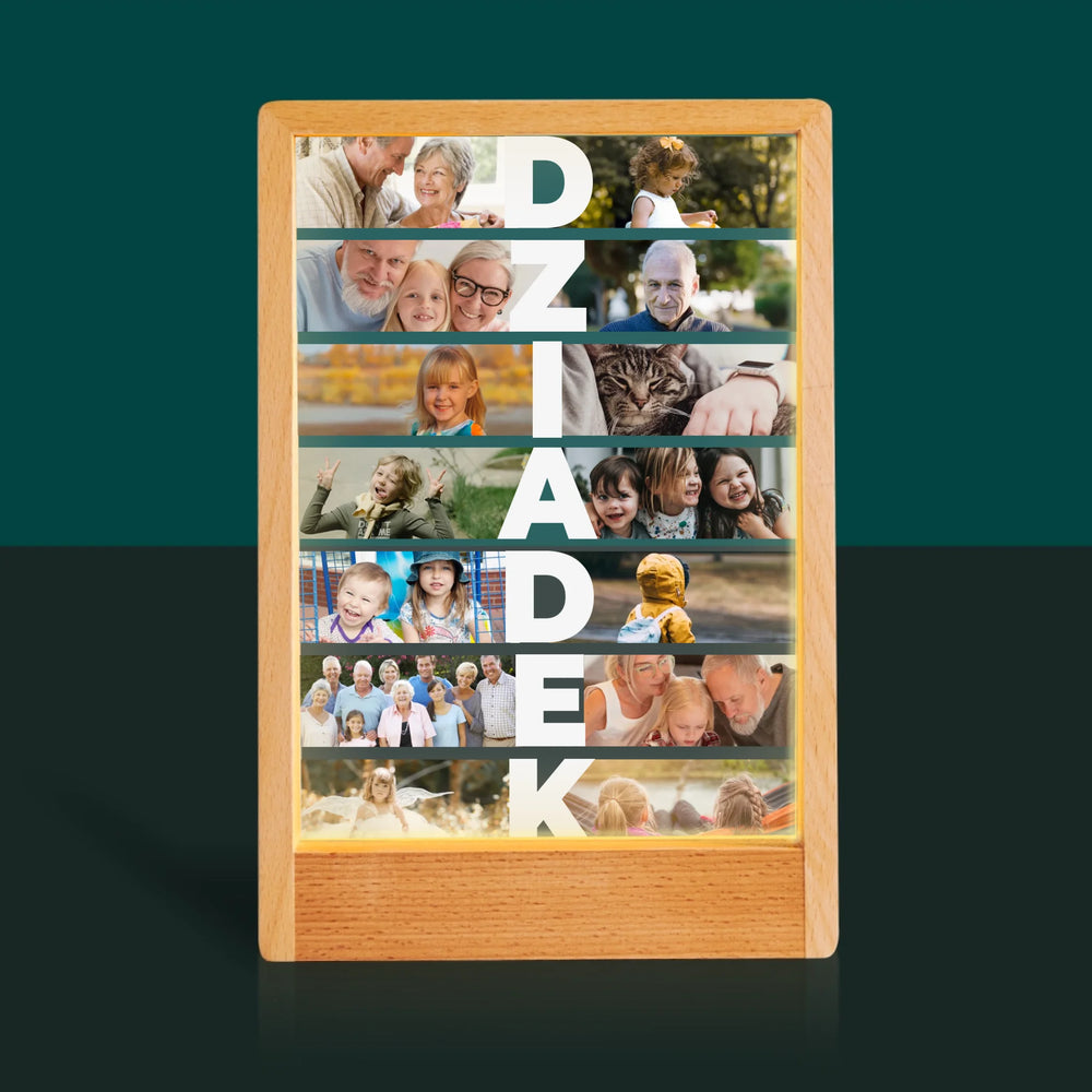 Fotokolaż: Dziadek - Wydruk na szkle akrylowym w ramce LED