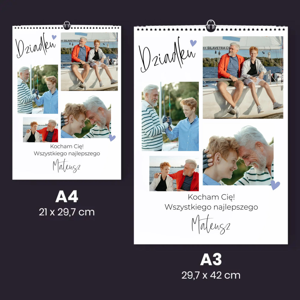 Fotokolaż: Dziadku Kocham Cię - Personalizowany Kalendarz Ścienny