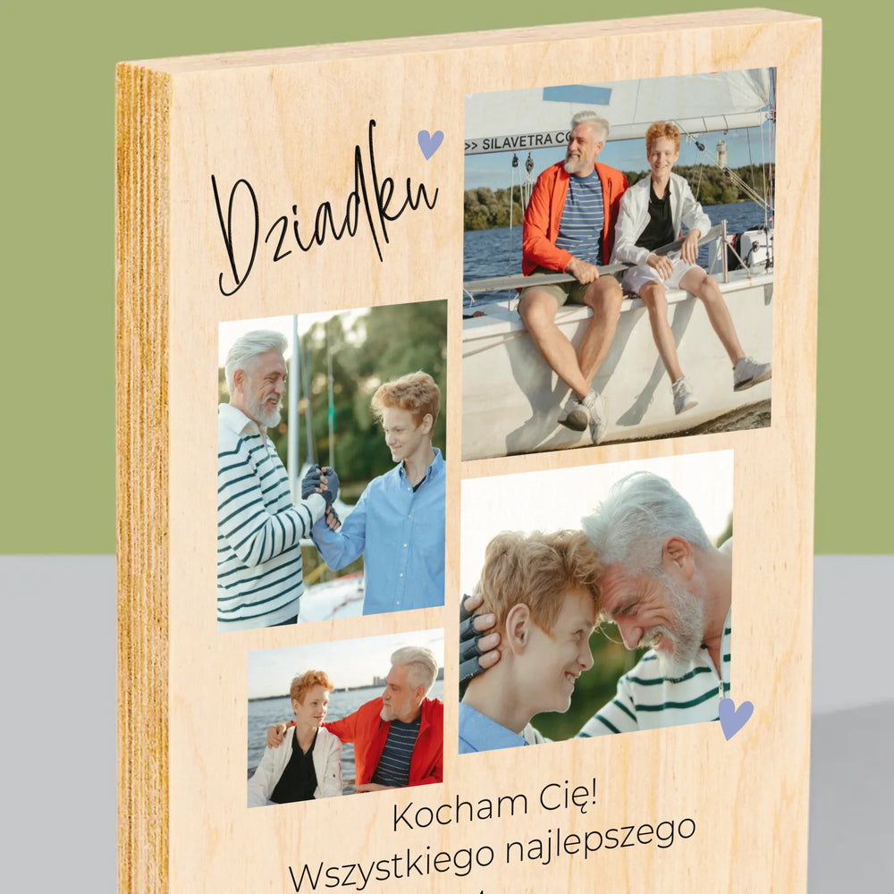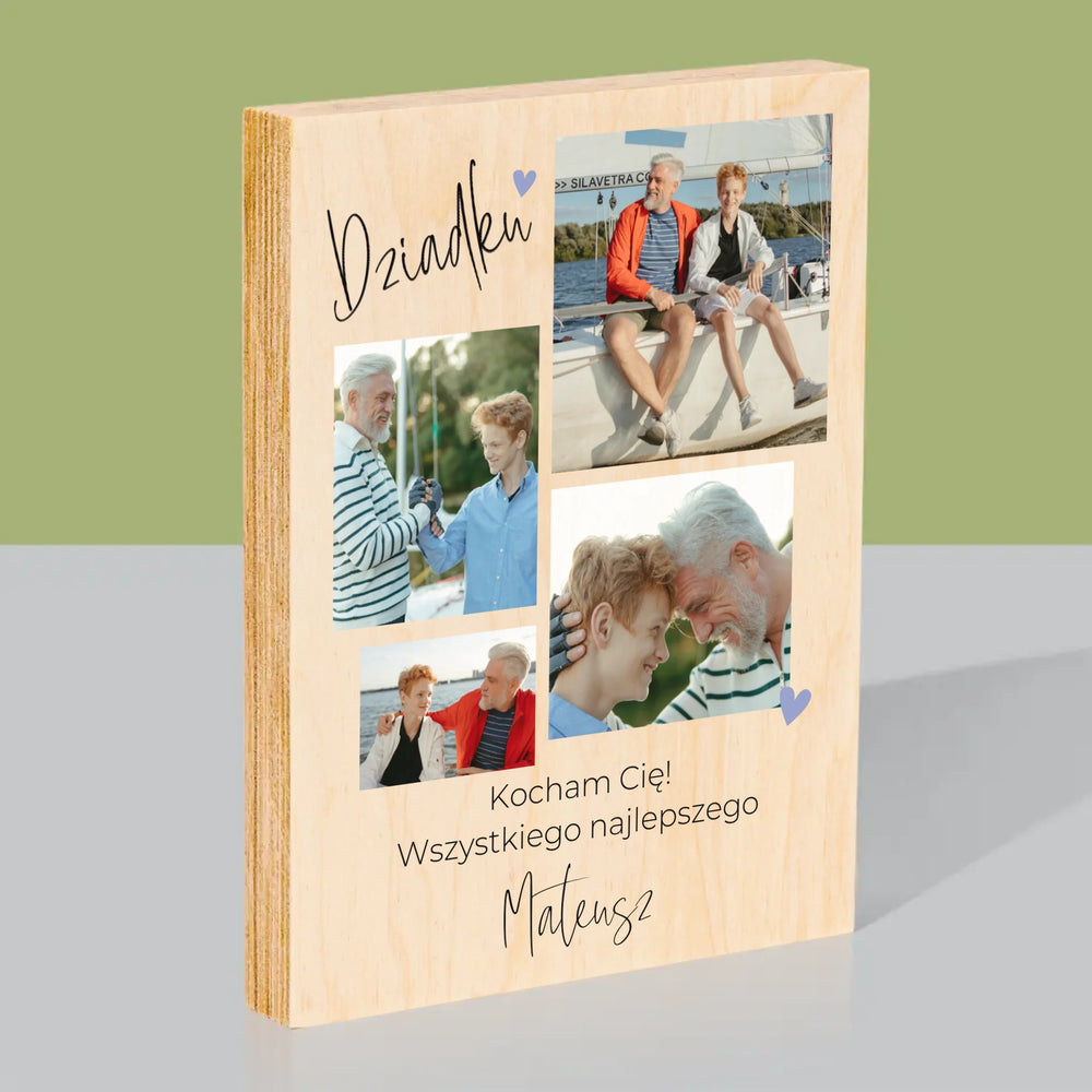 Fotokolaż: Dziadku Kocham Cię - Wydruk na drewnie - Pion