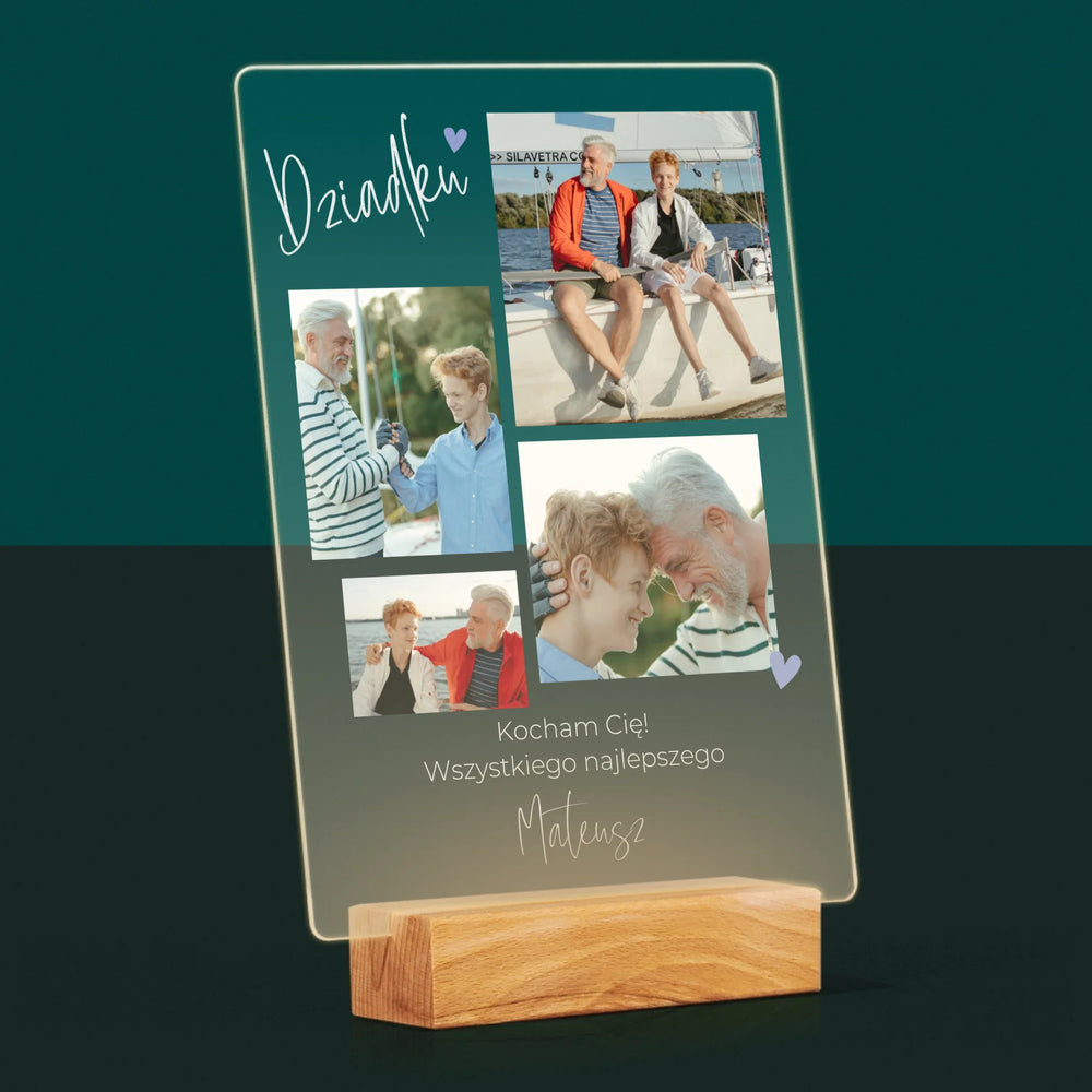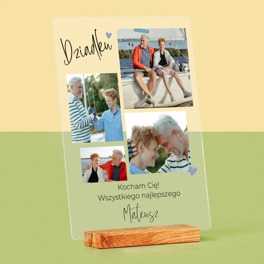 Fotokolaż: Dziadku Kocham Cię - Wydruk na szkle akrylowym