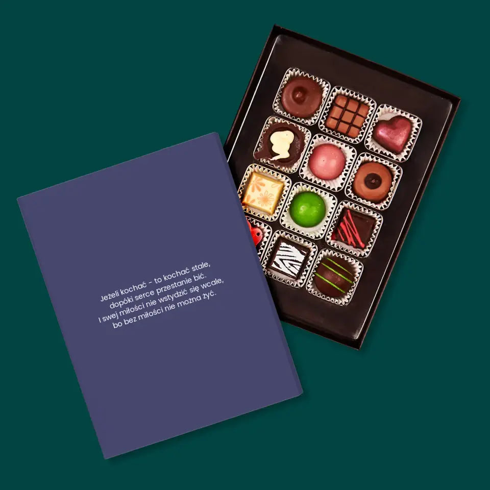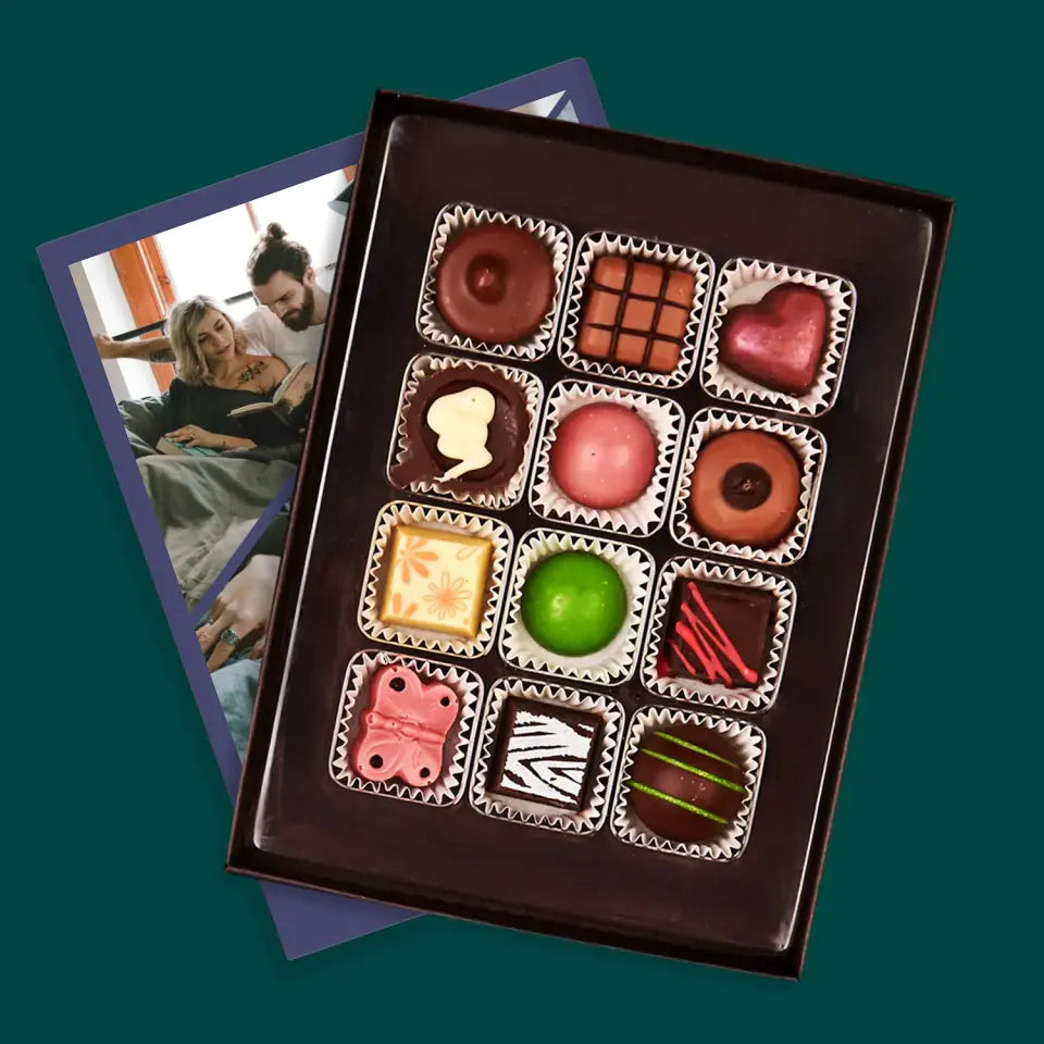 Pyszne praliny z belgijskiej czekolady w eleganckim pudełku z wybraną przez Ciebie personalizacją.