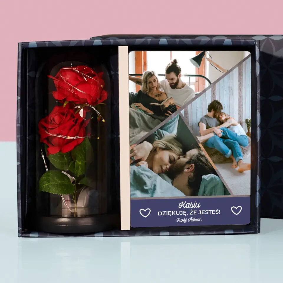 Fotokolaż: Dziękuję, Że Jesteś - Zestaw prezentowy z wieczną różą
