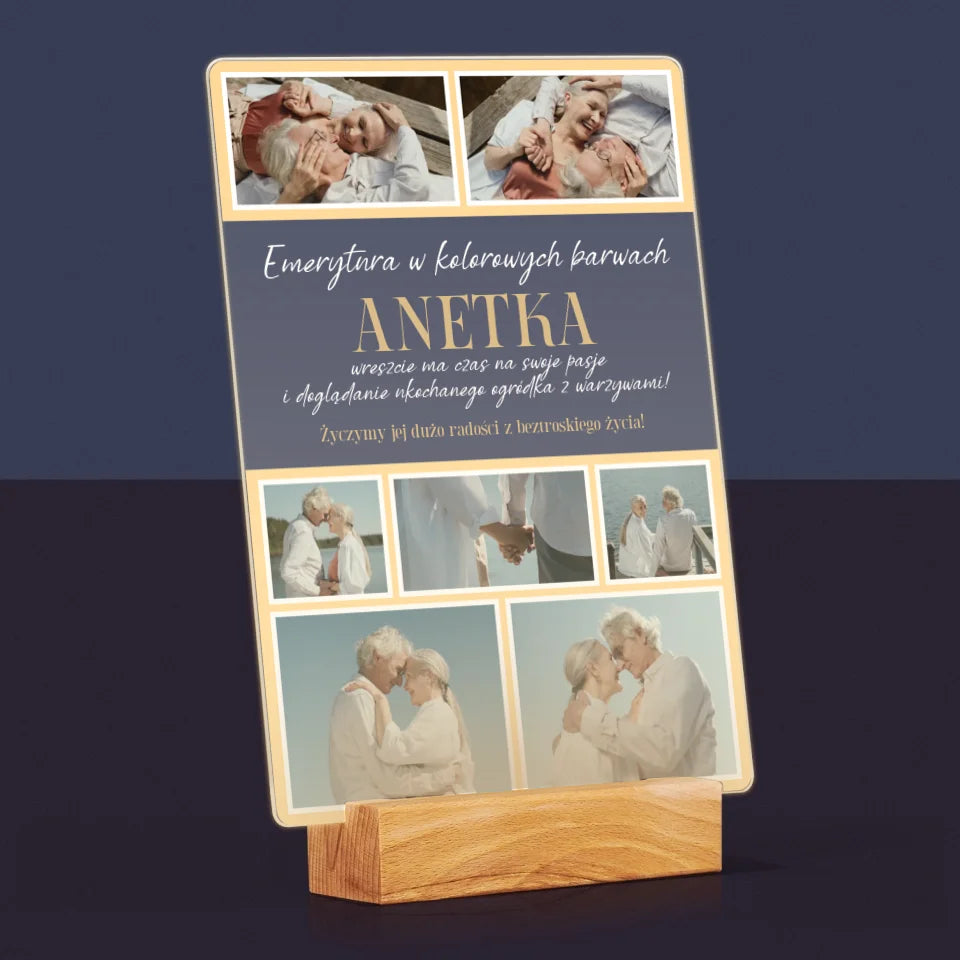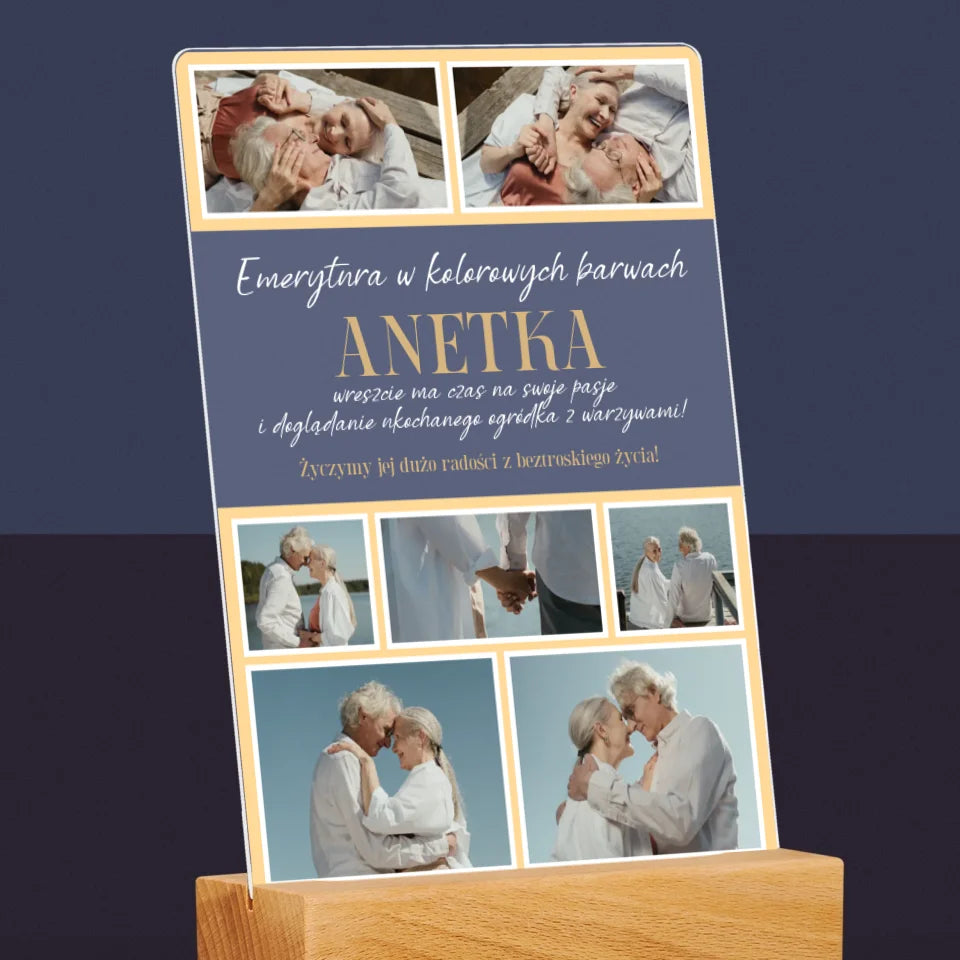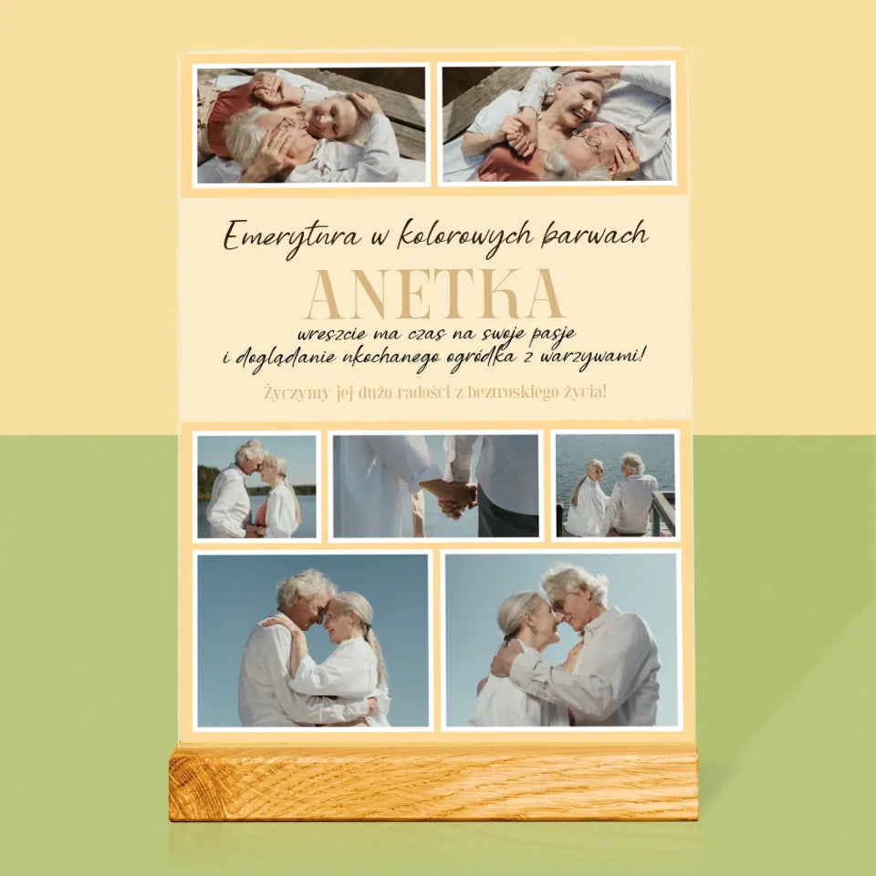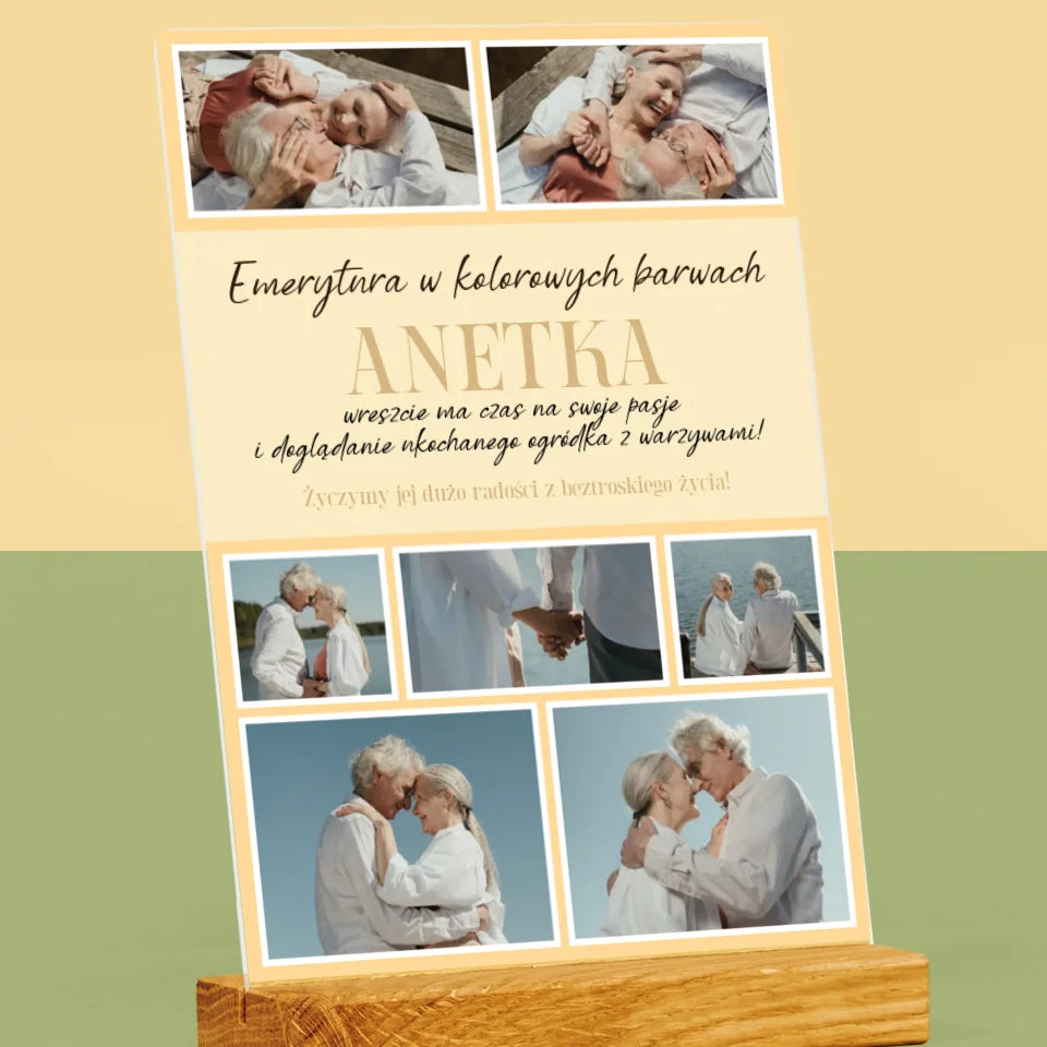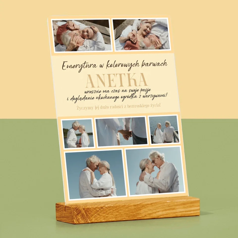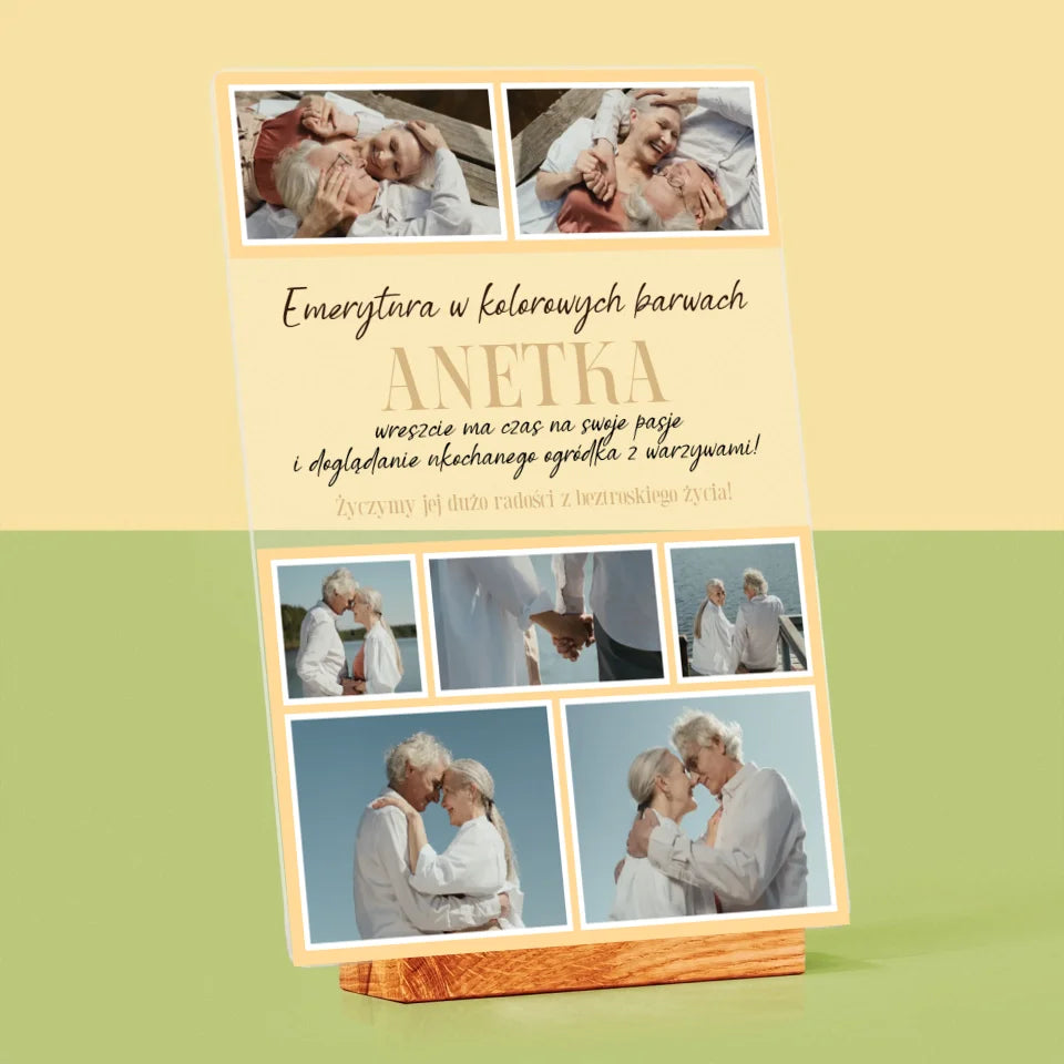 Fotokolaż: Emerytura w Kolorowych Barwach - Wydruk na szkle akrylowym