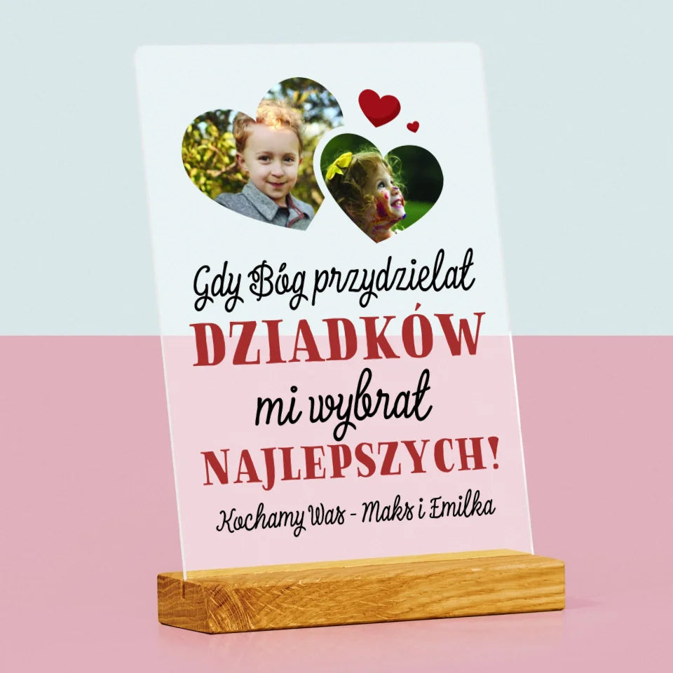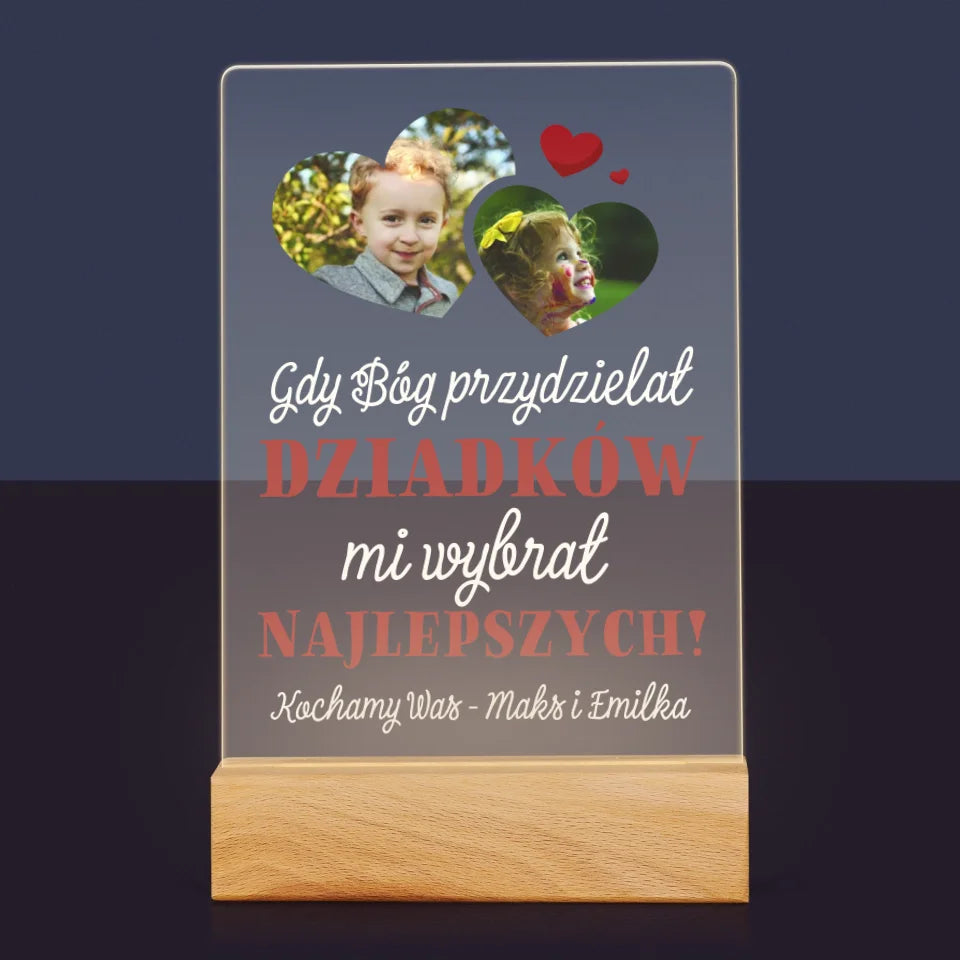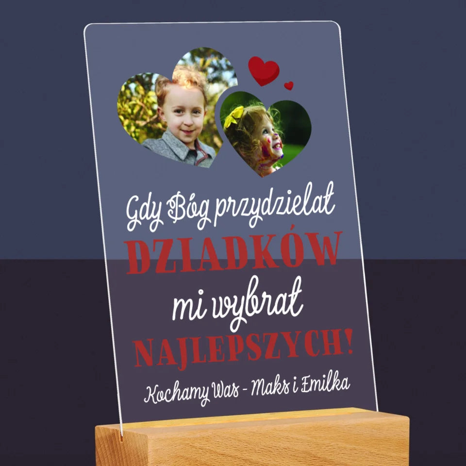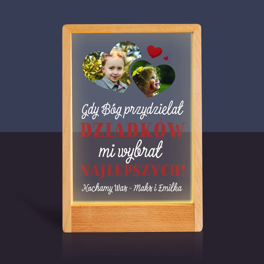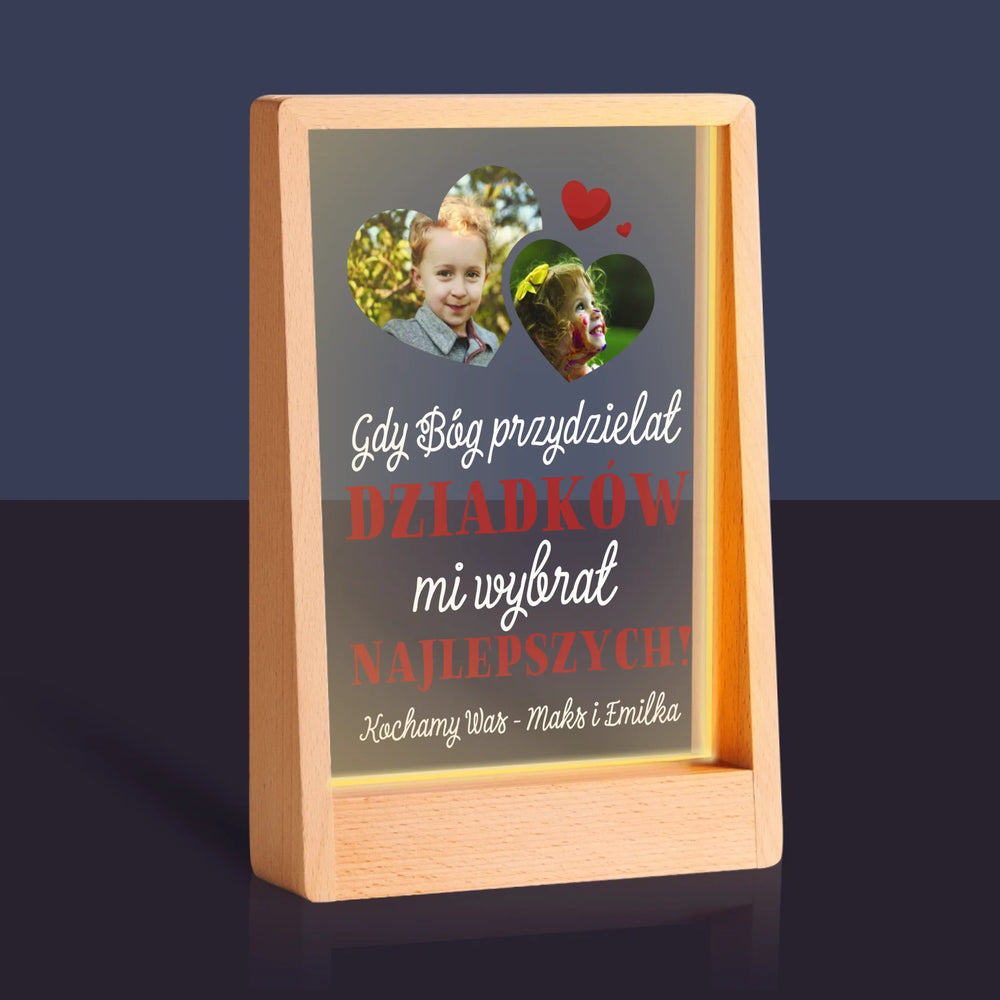 Fotokolaż: Gdy Bóg Przydzielał Dziadków - Wydruk na szkle akrylowym w ramce LED