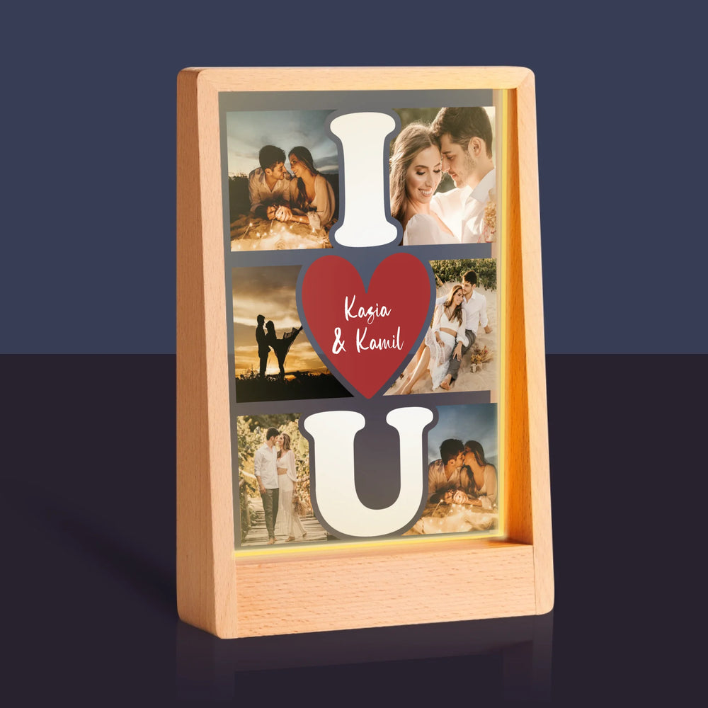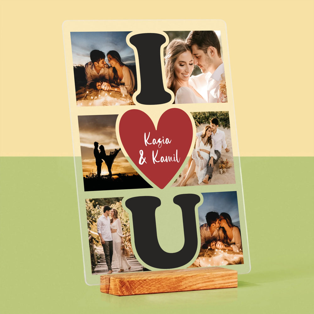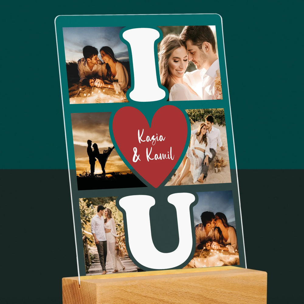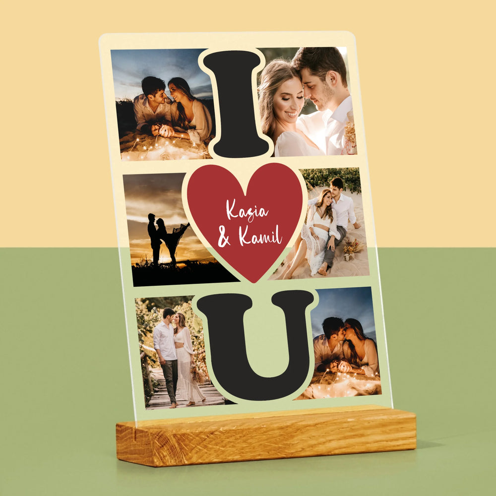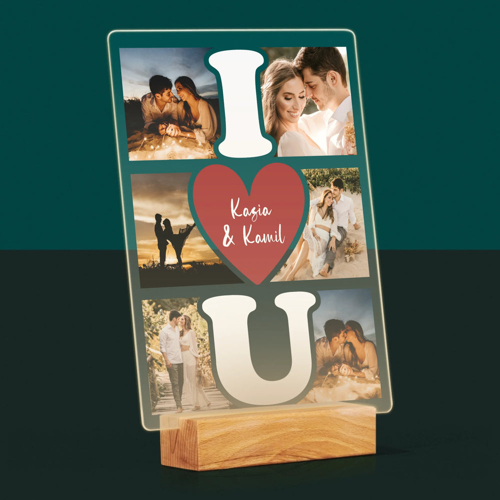 Fotokolaż: I Love You - Wydruk na szkle akrylowym w ramce LED