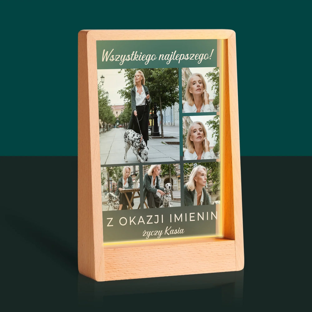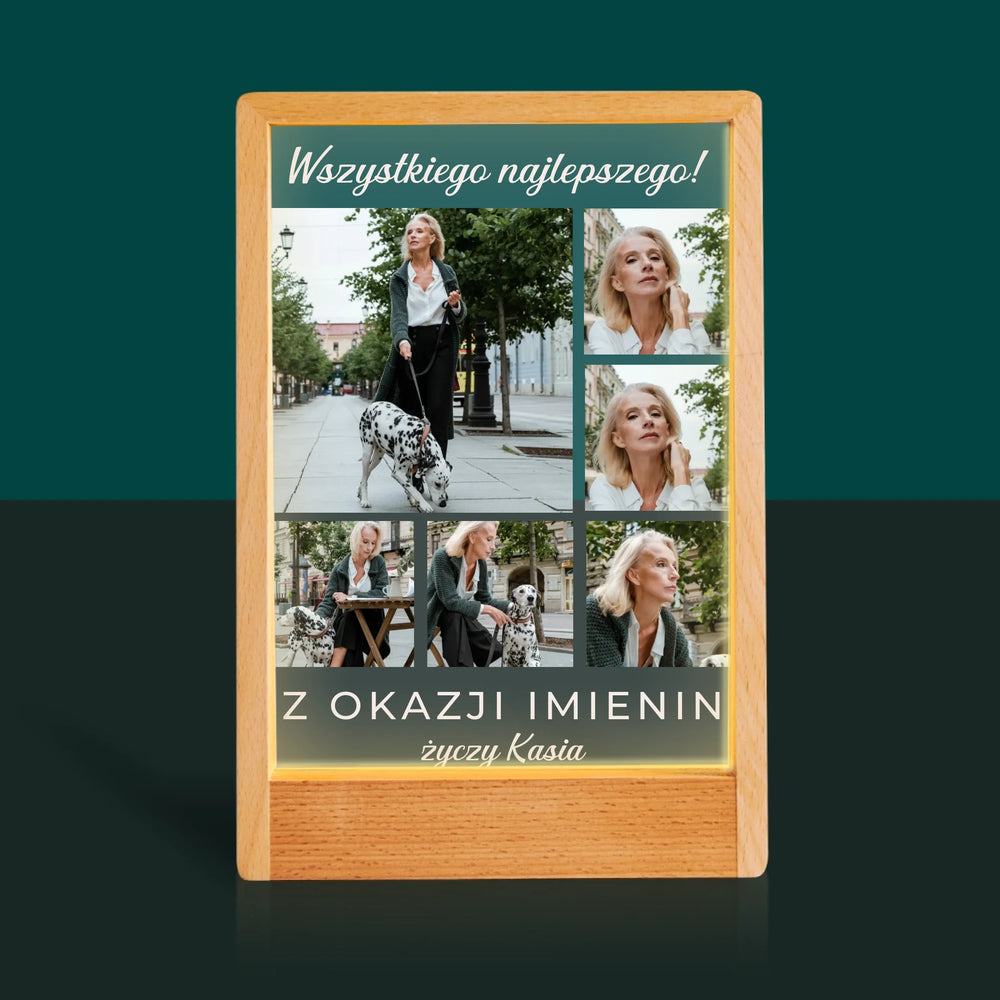 Fotokolaż: Imieninowy - Wydruk na szkle akrylowym w ramce LED