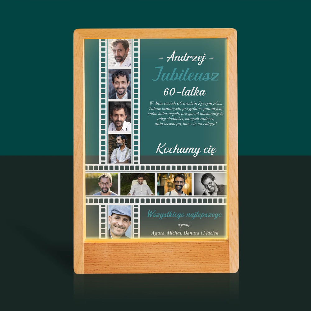 Fotokolaż: Jubileusz 60-Latka - Wydruk na szkle akrylowym w ramce LED