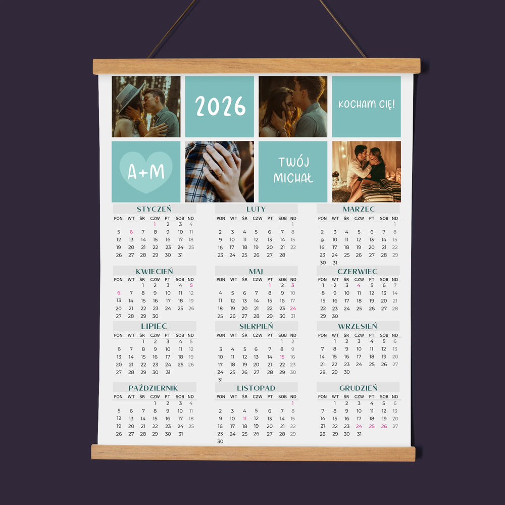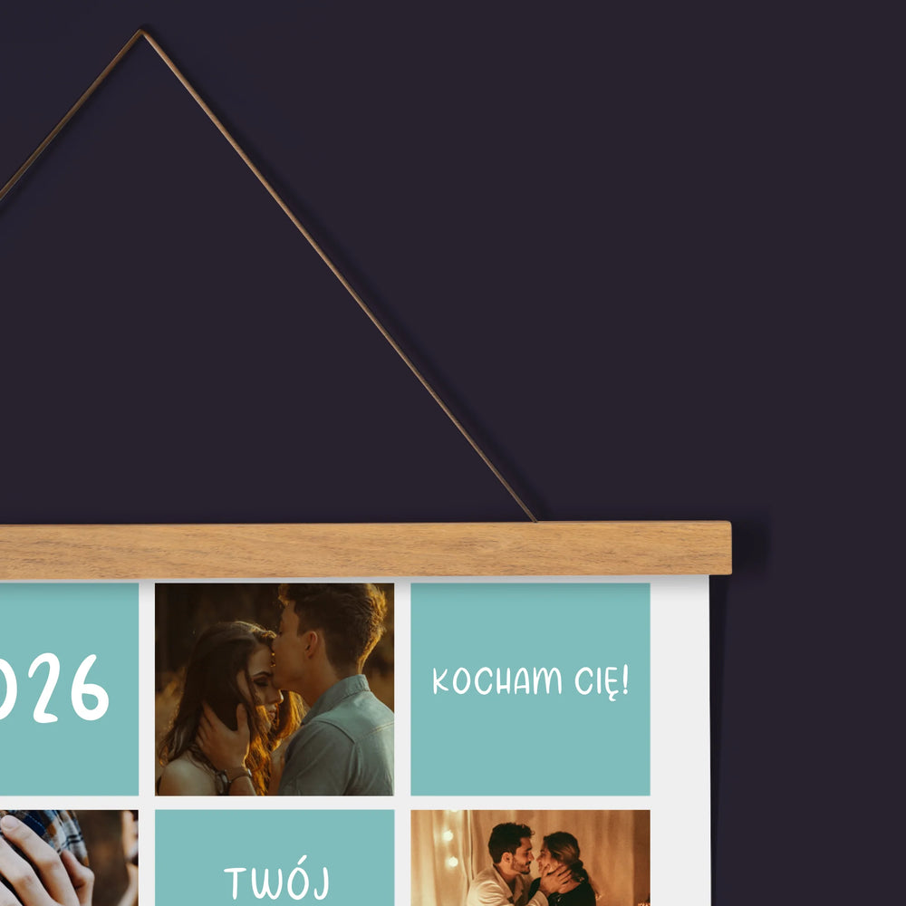 Fotokolaż: Kocham Cię Inicjały - Kalendarz plakatowy z listwami