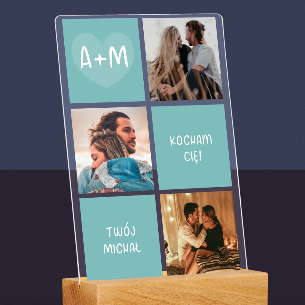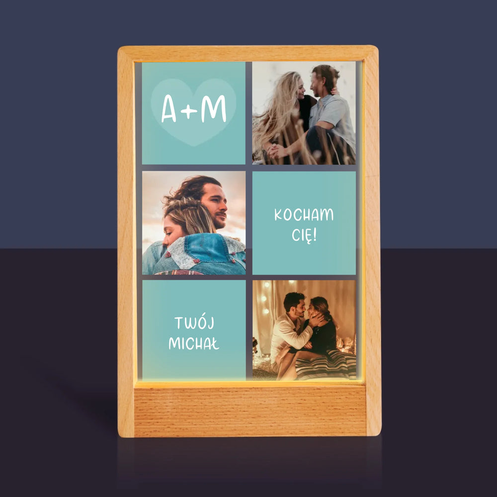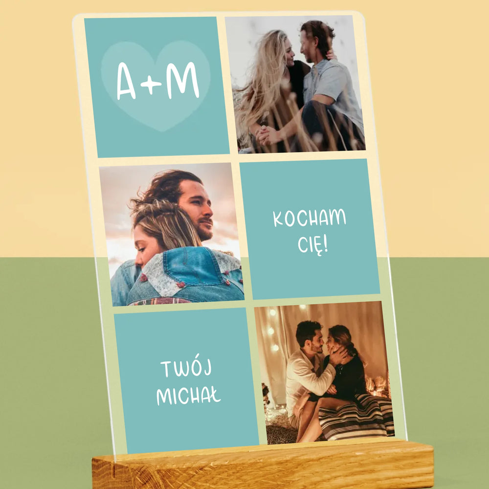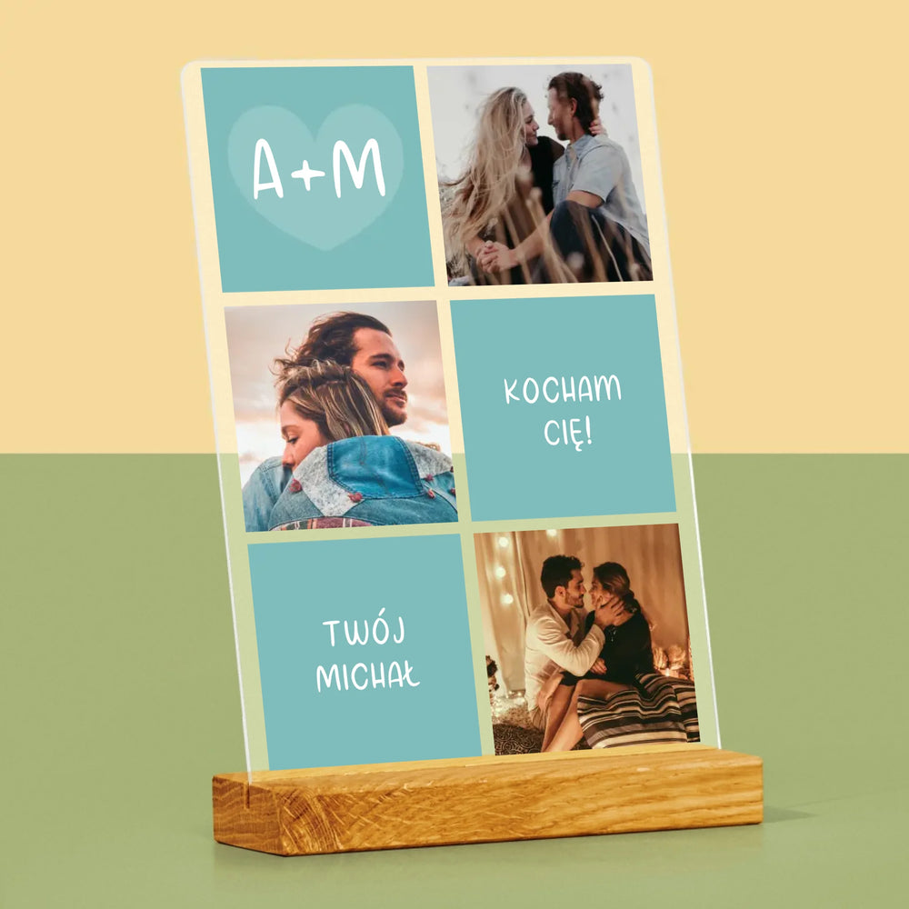 Fotokolaż: Kocham Cię Inicjały - Wydruk na szkle akrylowym