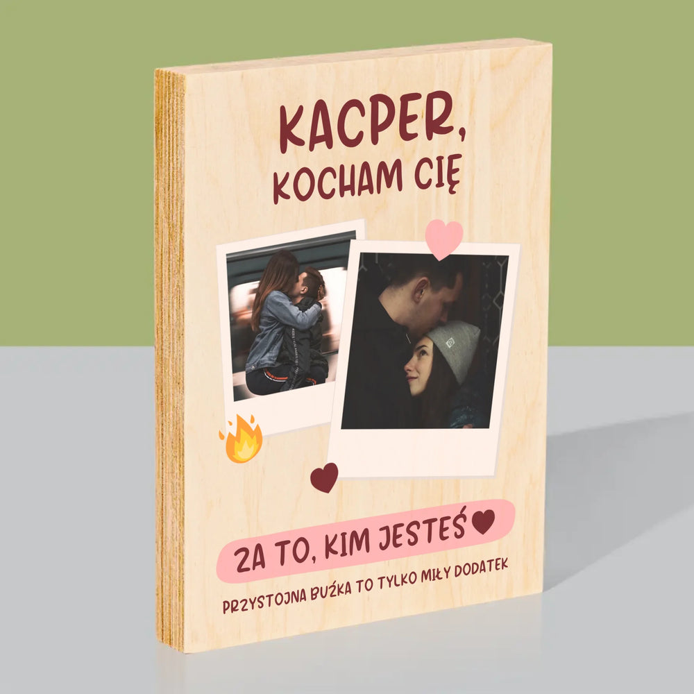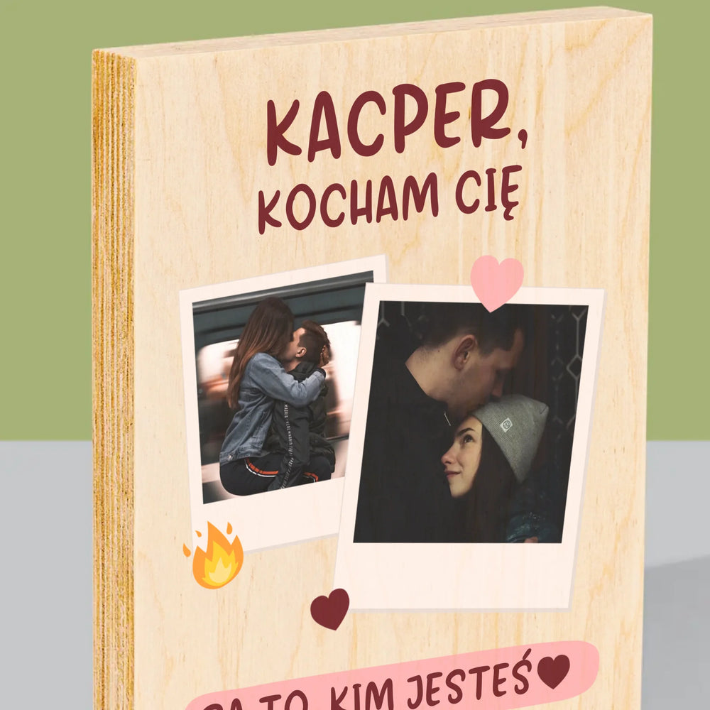 Fotokolaż: Kocham Cię Za To, Kim Jesteś - Wydruk na drewnie - Pion