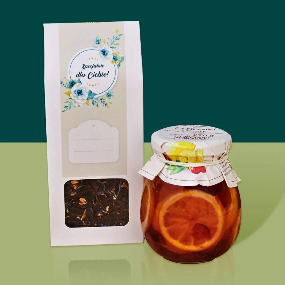 Aromatyczna herbata w zestawie prezentowym gotowym do wręczenia bliskiej osobie.