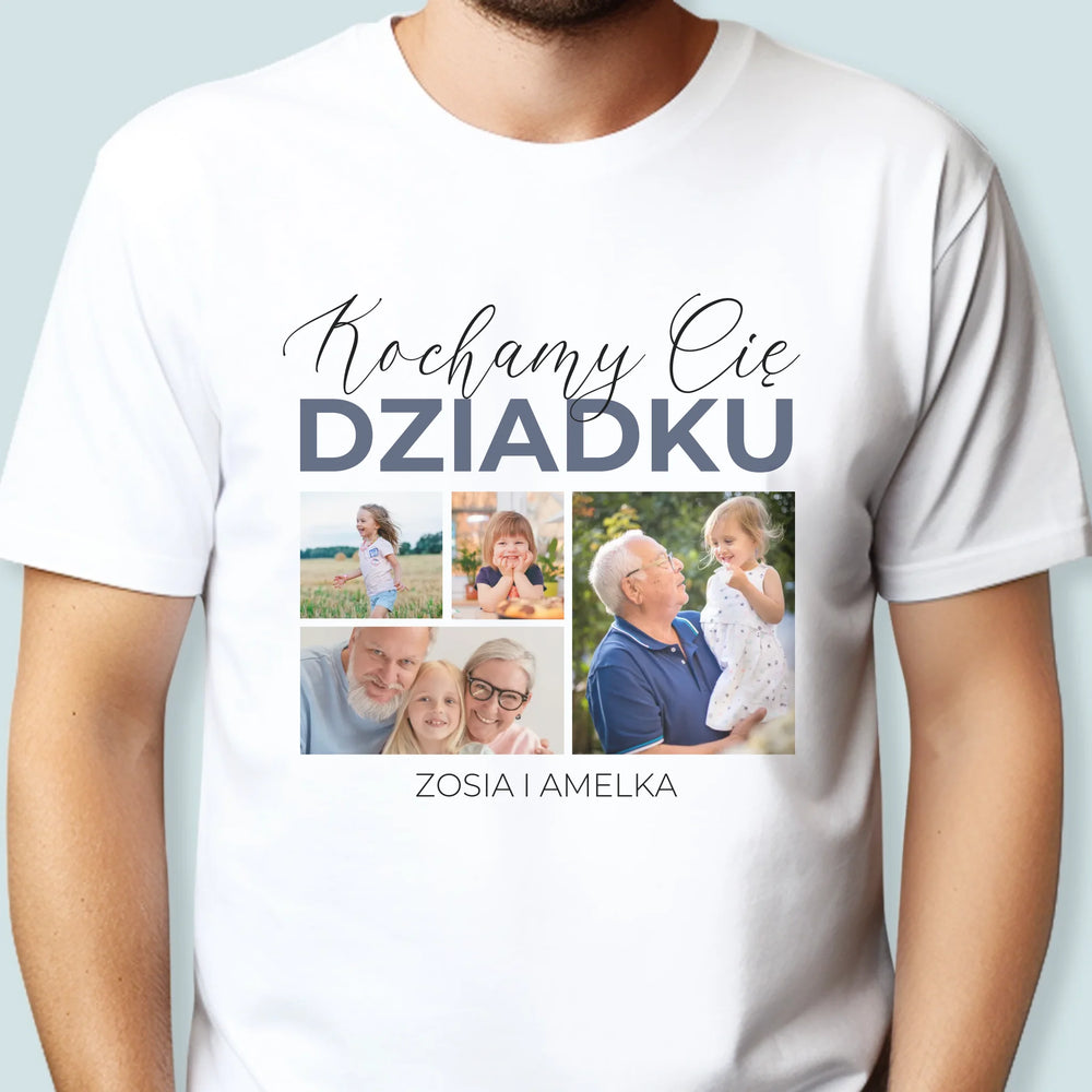 Fotokolaż: Kochamy Cię Dziadku - Personalizowana Koszulka Męska