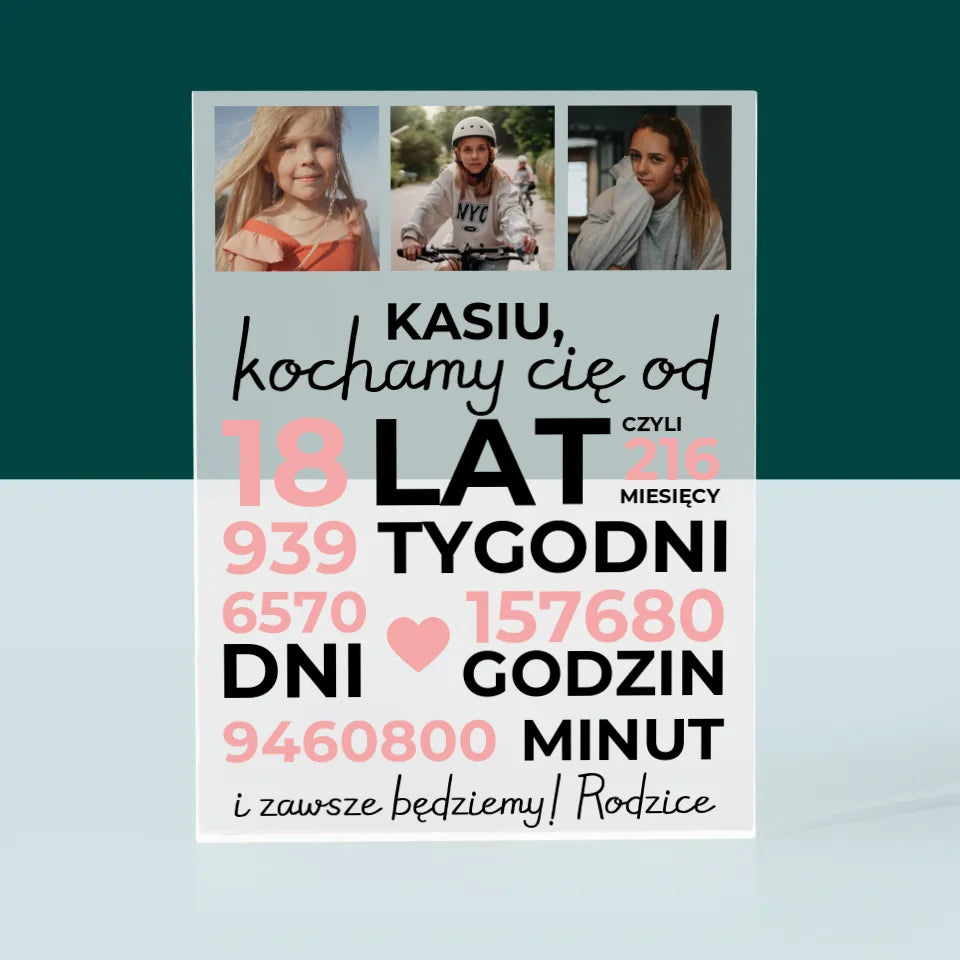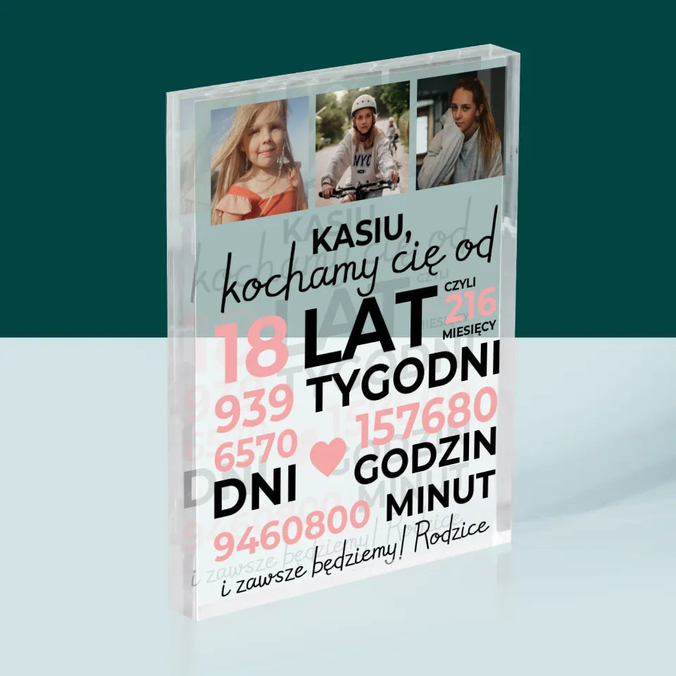 Fotokolaż: Kochamy Cię Od 18 Lat - Blok Akrylowy z Nadrukiem