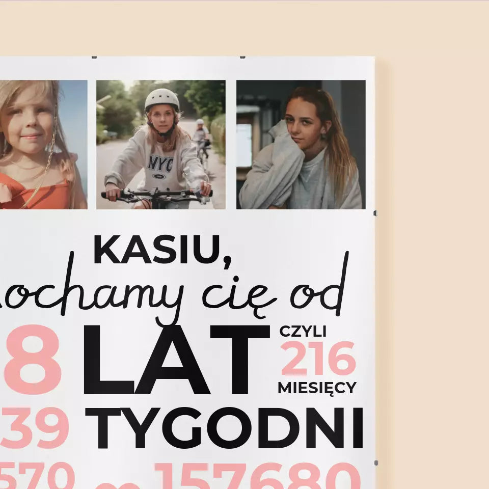 Fotokolaż: Kochamy Cię Od 18 Lat - Plakat 40x60cm w Antyramie