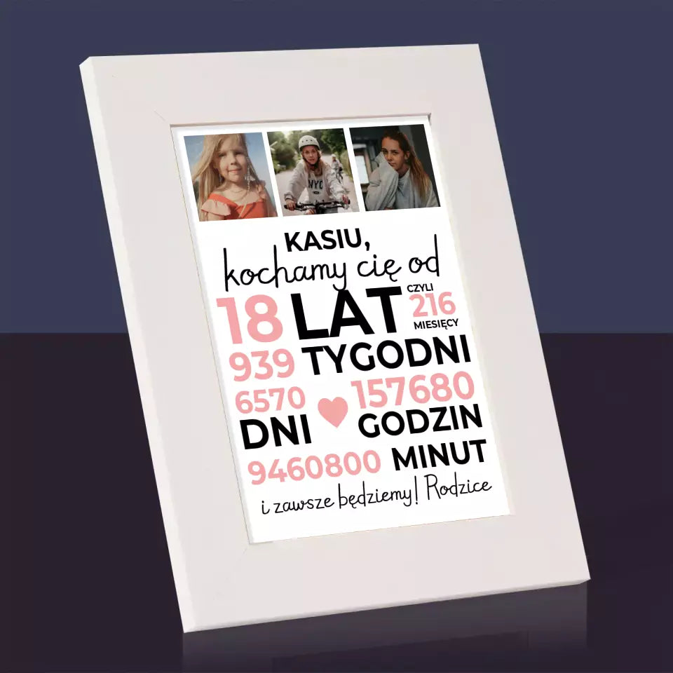 Fotokolaż: Kochamy Cię Od 18 Lat - Ramka na Zdjęcia z Nadrukiem