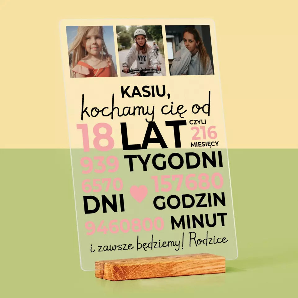 Fotokolaż: Kochamy Cię Od 18 Lat - Wydruk na szkle akrylowym