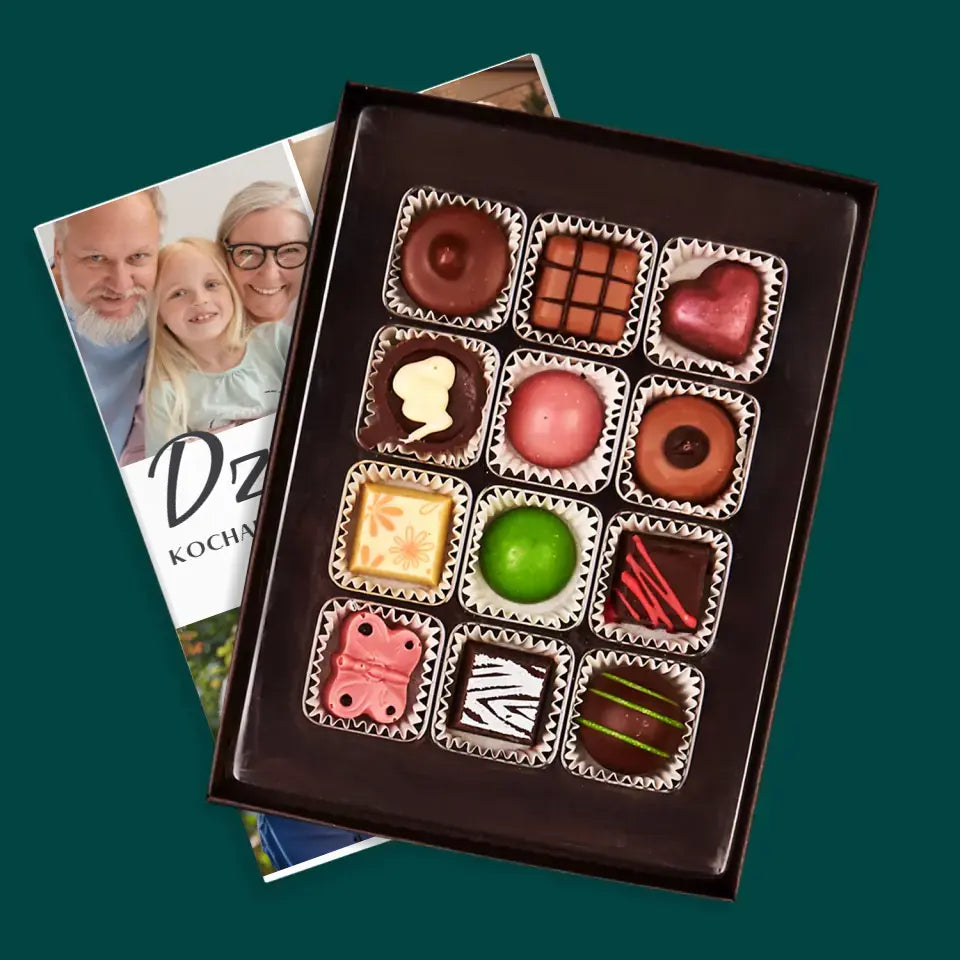 Pyszne praliny z belgijskiej czekolady w eleganckim pudełku z wybraną przez Ciebie personalizacją.