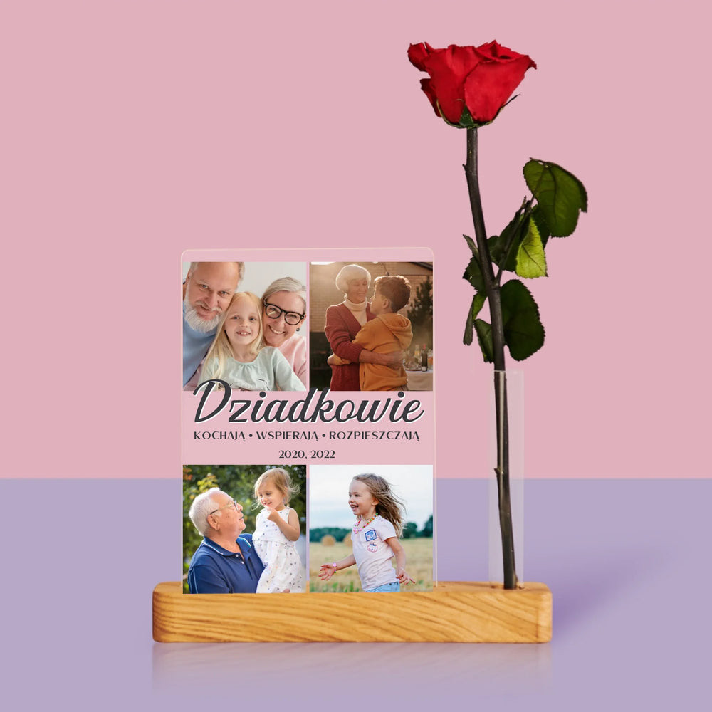 Fotokolaż: Kochani Dziadkowie - Wydruk na szkle akrylowym z różą