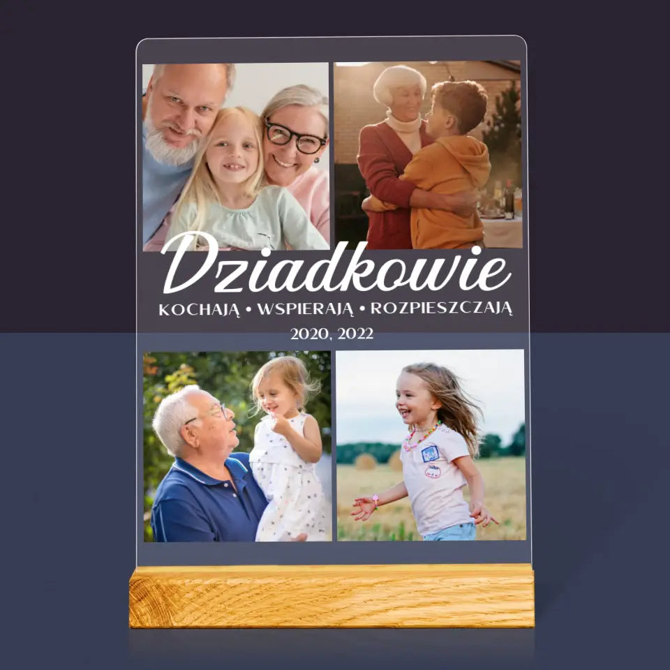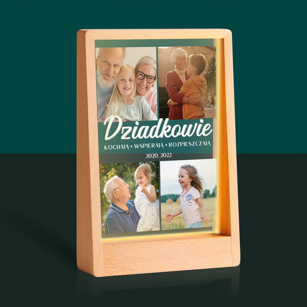 Fotokolaż: Kochani Dziadkowie - Wydruk na szkle akrylowym w ramce LED