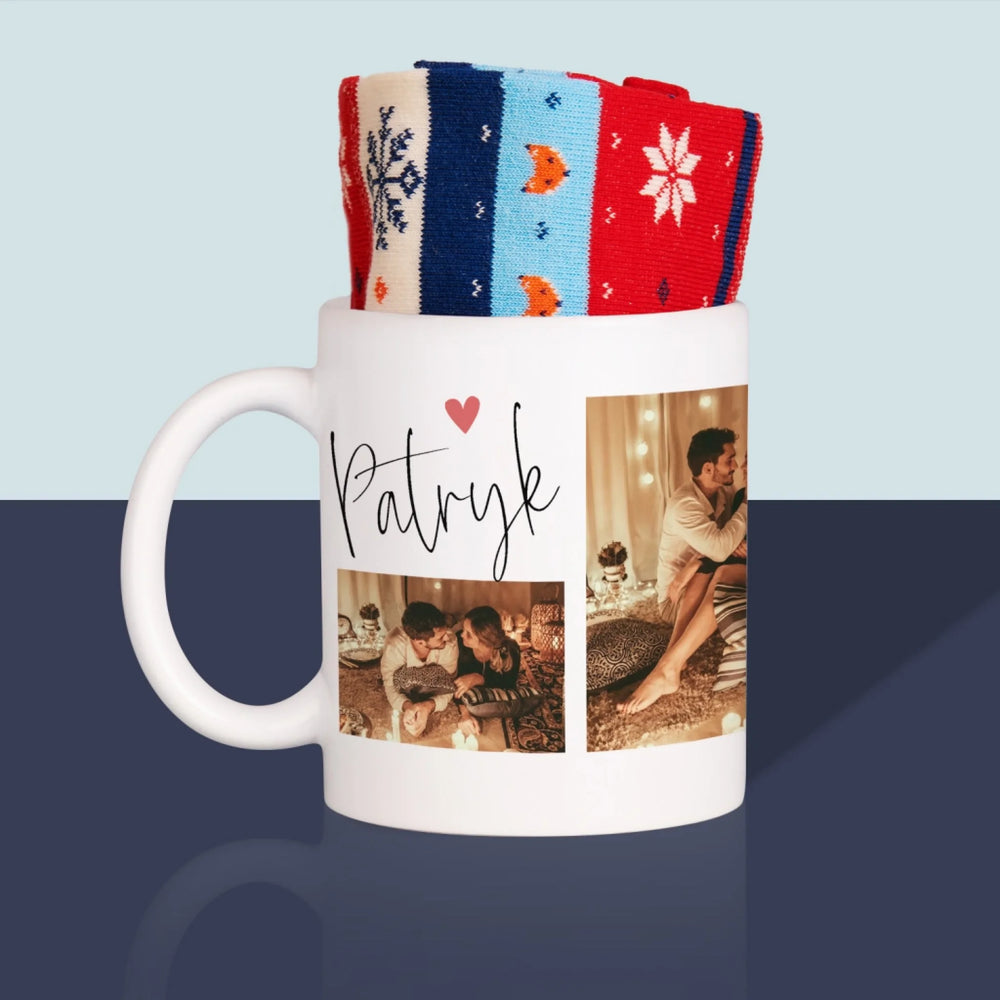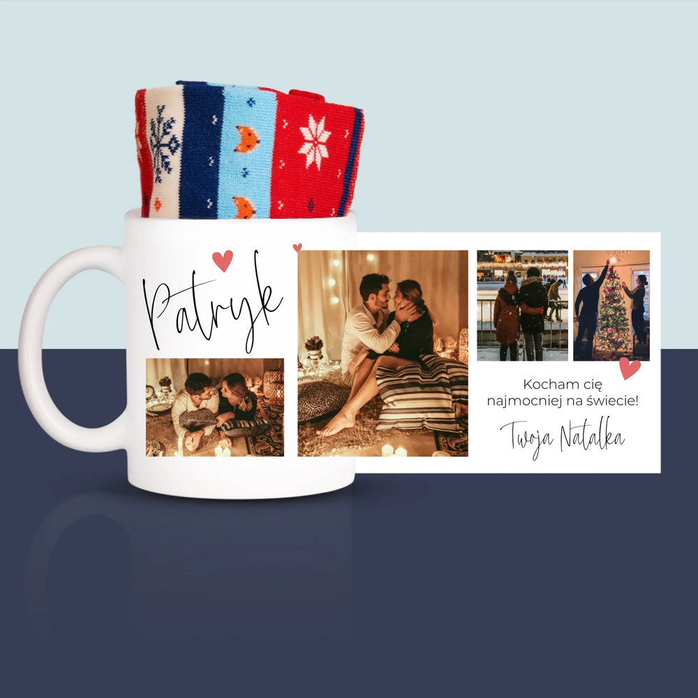 Fotokolaż: Kochanie Kocham Cię - Zimowe skarpetki w kubku