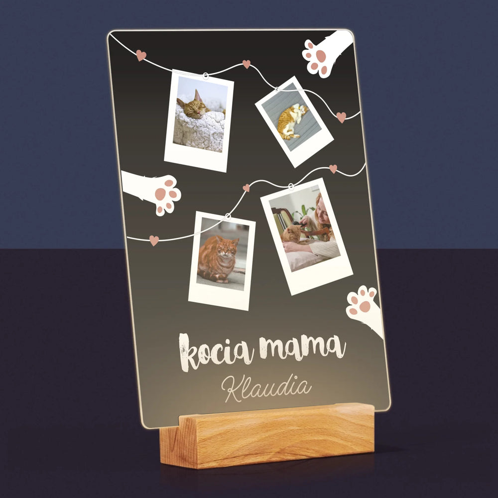 Fotokolaż: Kocia Mama Polaroidy - Wydruk na szkle akrylowym