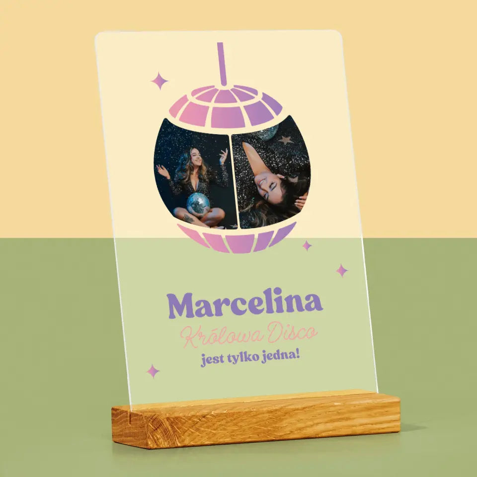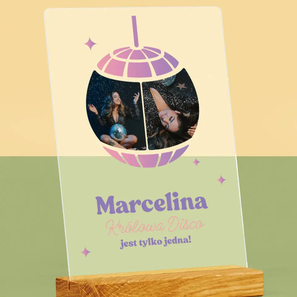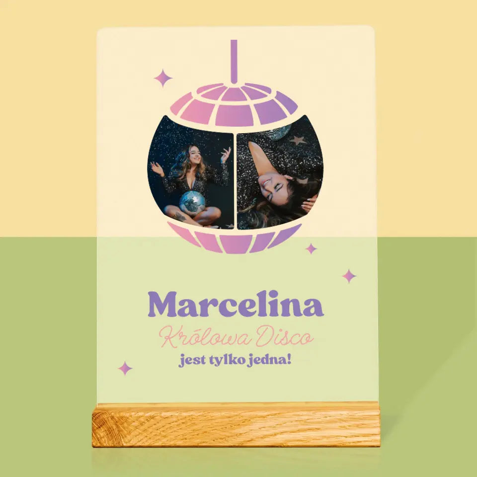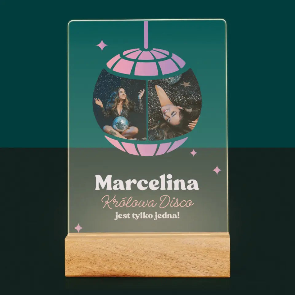 Fotokolaż: Królowa Disco - Wydruk na szkle akrylowym LED