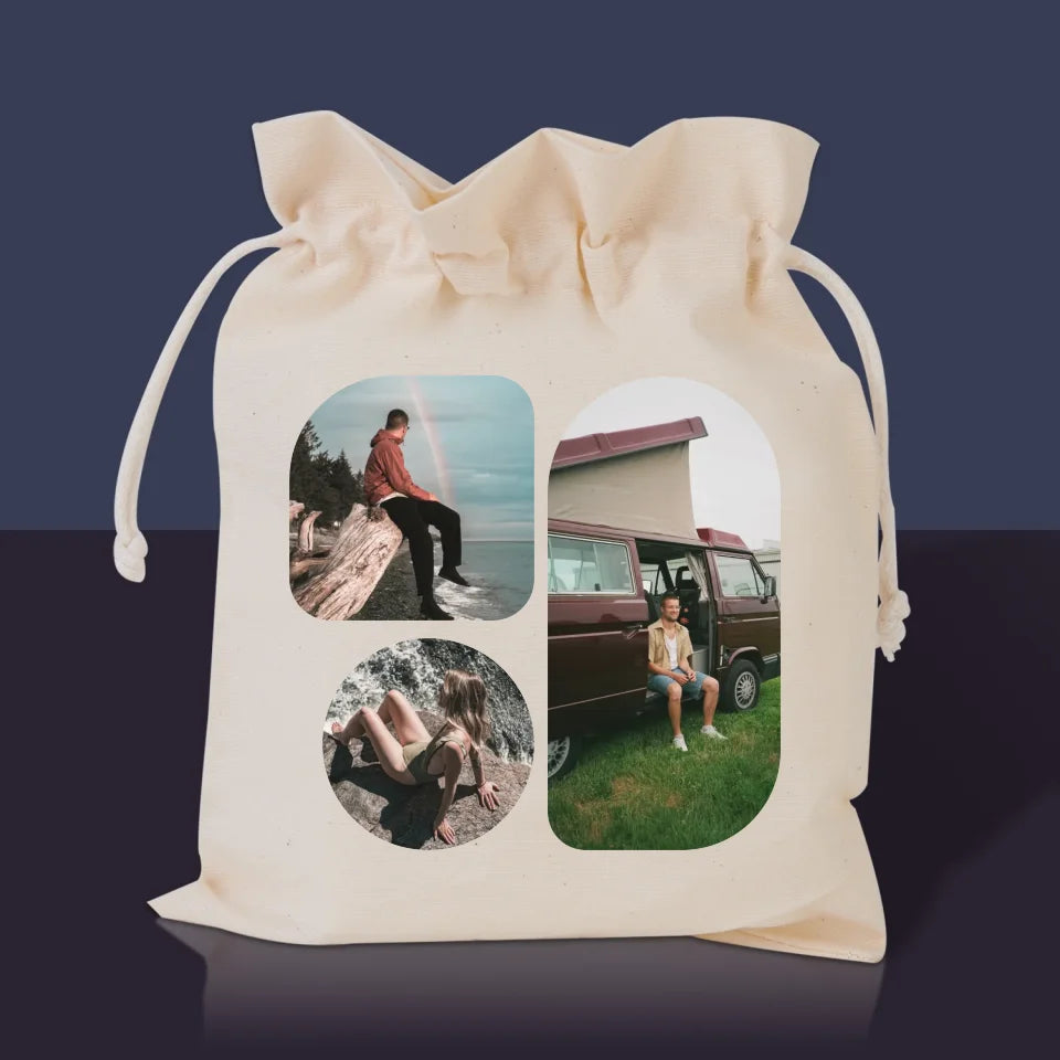 Woreczek typu sakiewka wykonany jest ze 100% bawełny i ma wymiary 20 x 25 cm.
