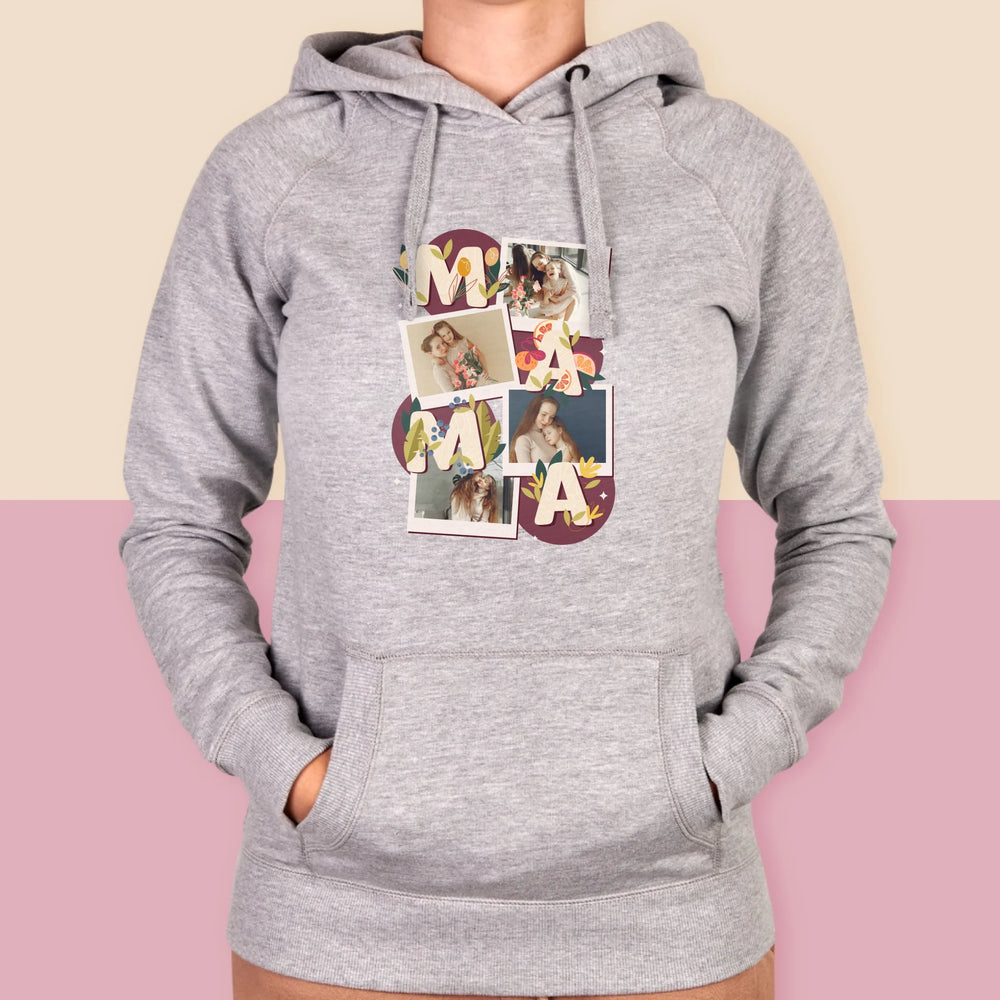 Fotokolaż: Literki Mama - Bluza damska z kapturem