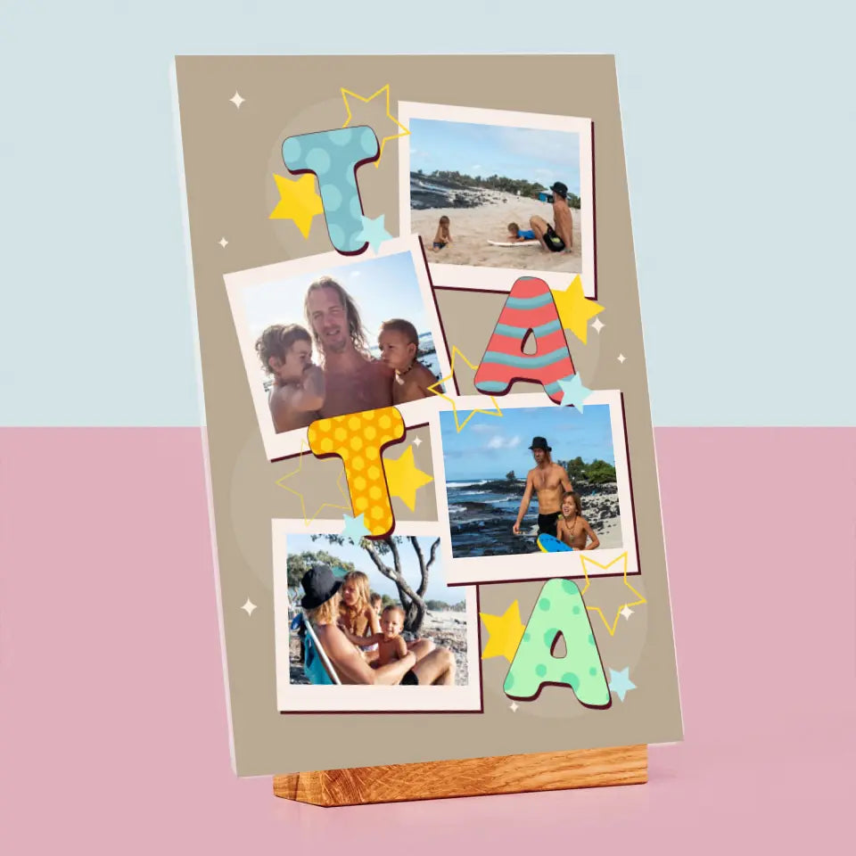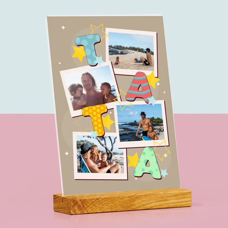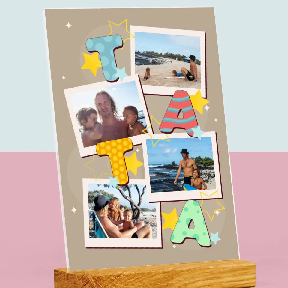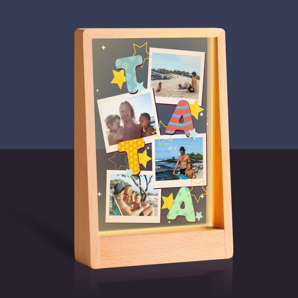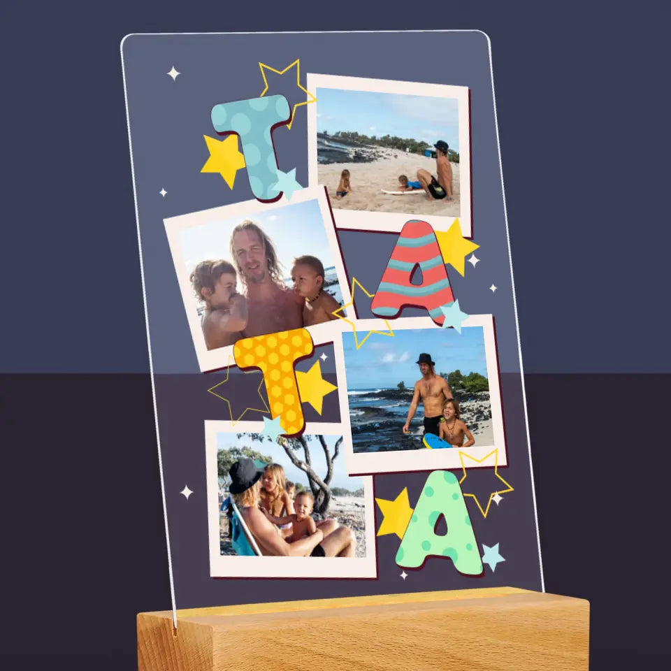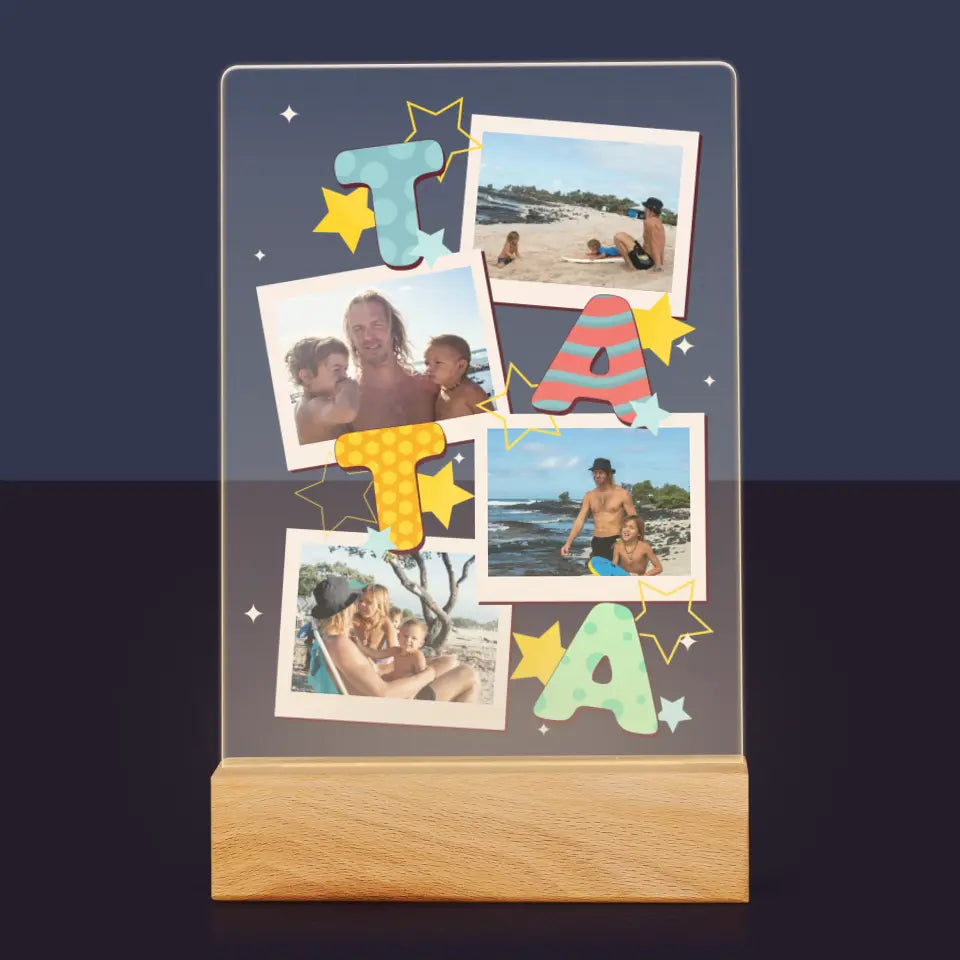 Fotokolaż: Literki Tata - Wydruk na szkle akrylowym w ramce LED