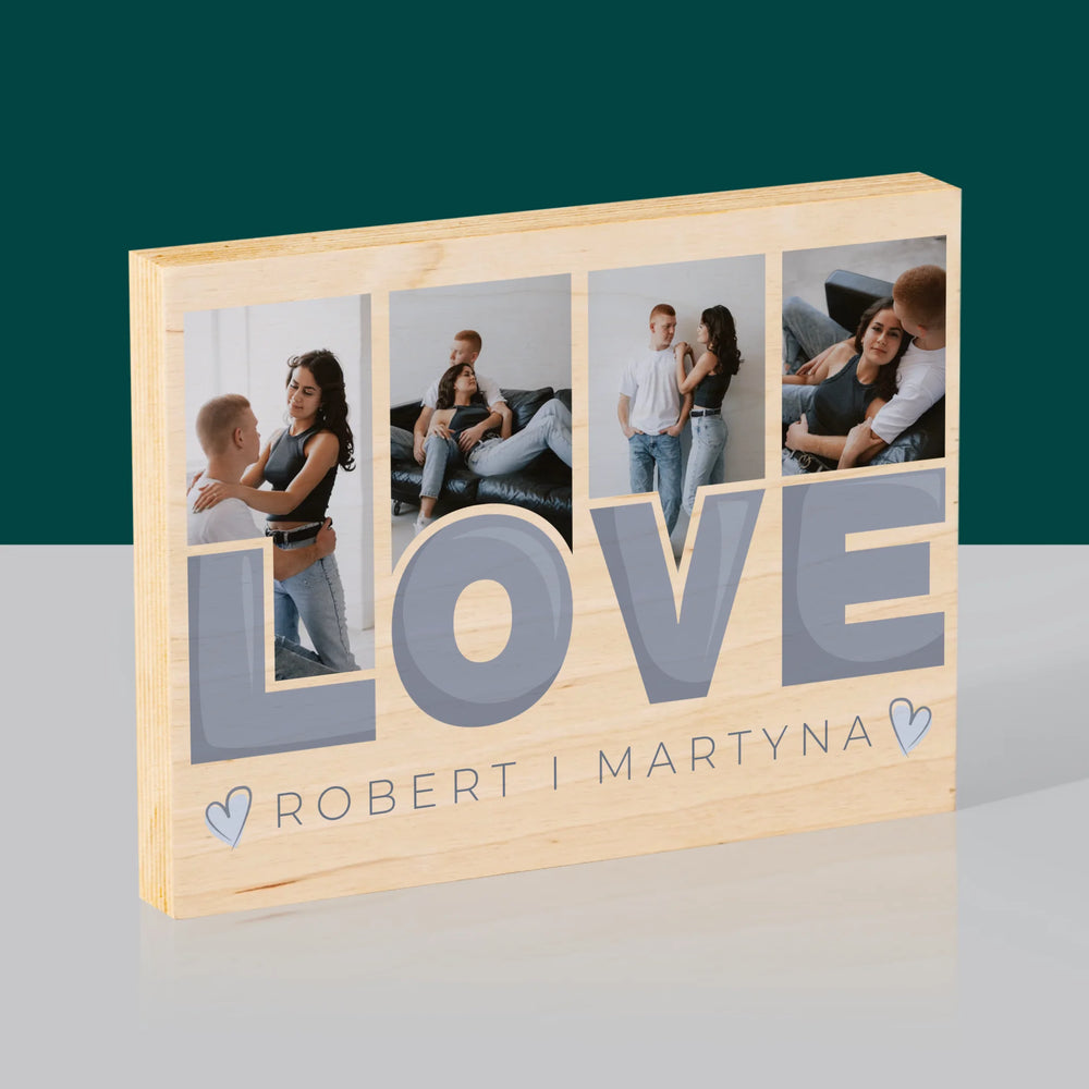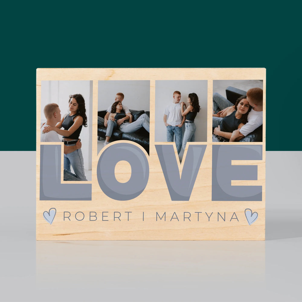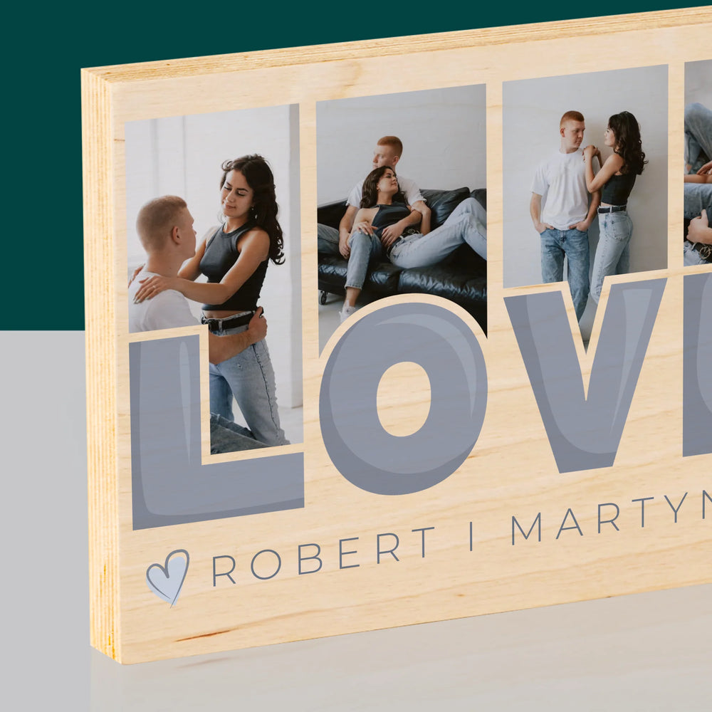 Fotokolaż: Love Imiona - Wydruk na drewnie - Poziom