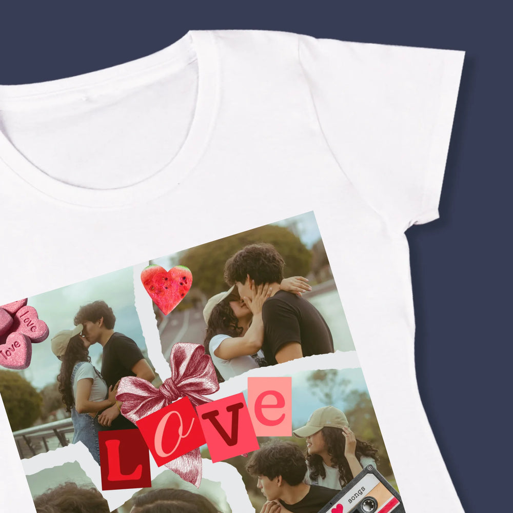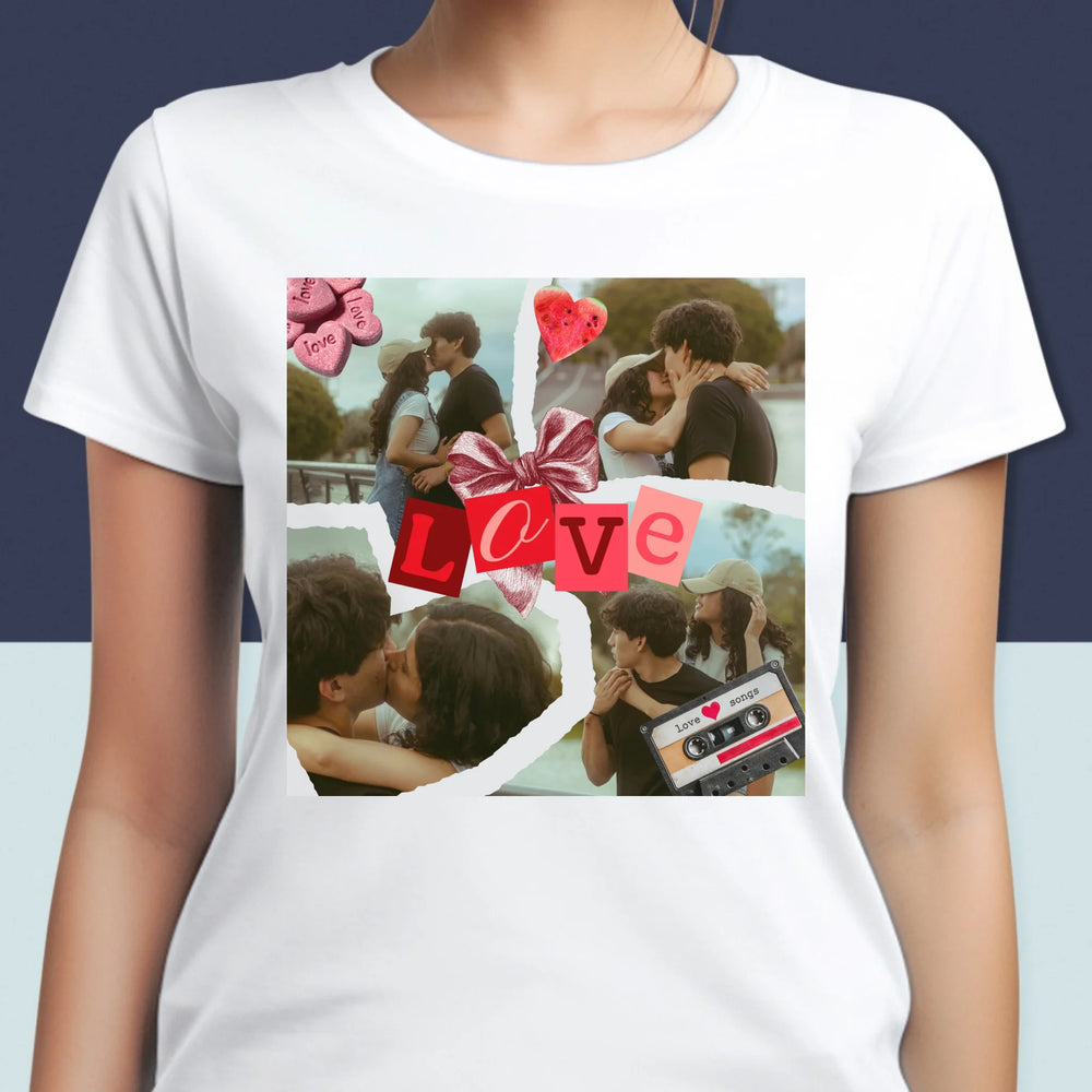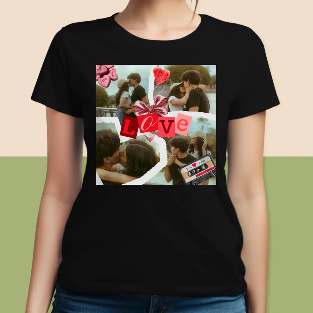 Fotokolaż: Love Retro - Personalizowana Koszulka Damska